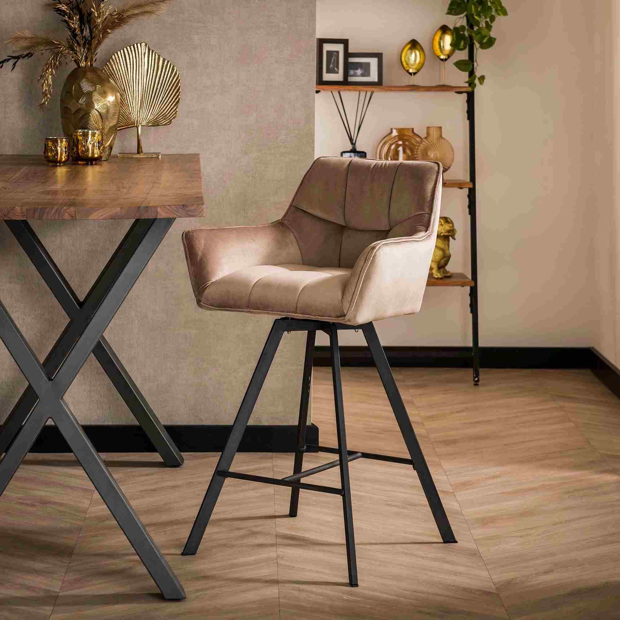 Produktinformationen "2er-Set Barhocker Spinras mit Armlehne, Drehbar - Samt, Champagner"