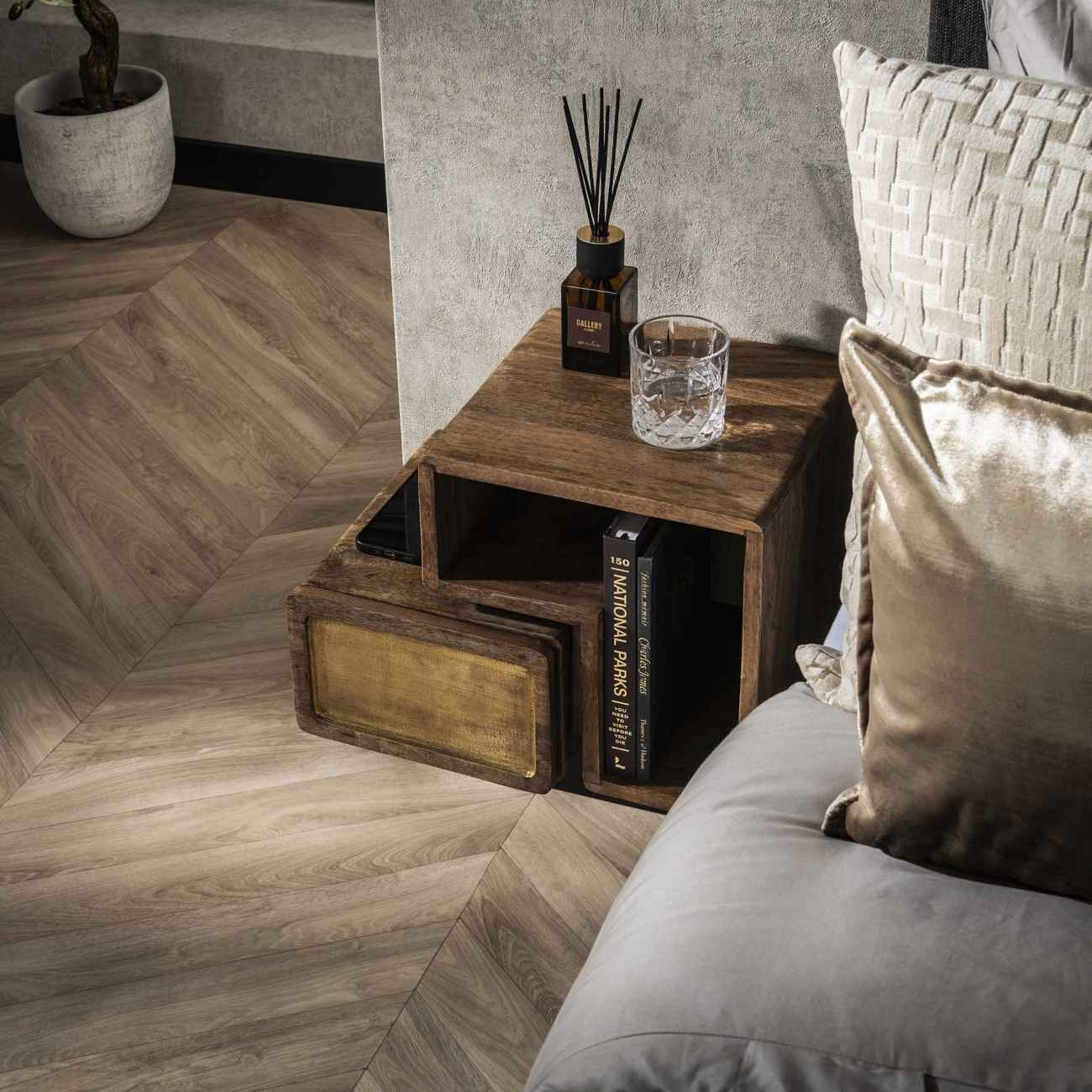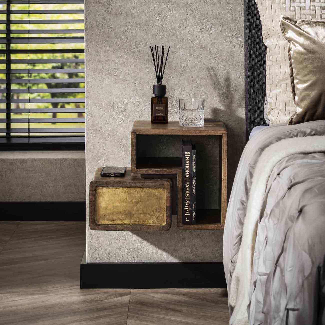 | Eigenschaften: | Durchdachter Materialmix aus Naturholz und antikisiertem Messing |