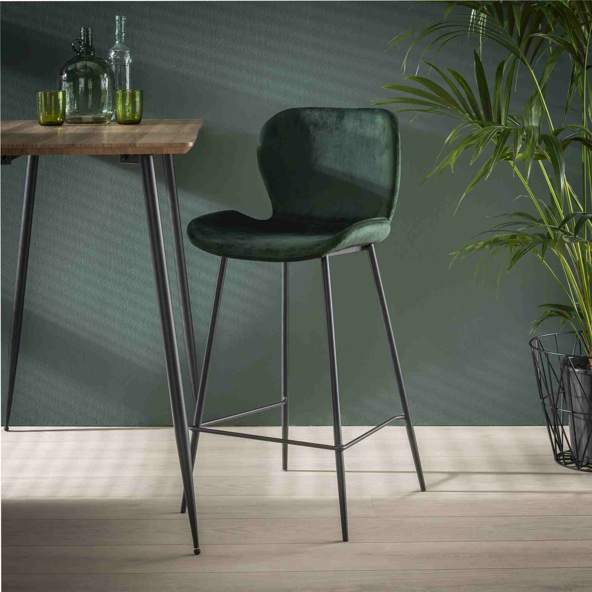 Produktinformationen "4er-Set Barhocker Pipvel mit Lehne - Samt, Dunkelgrün"
