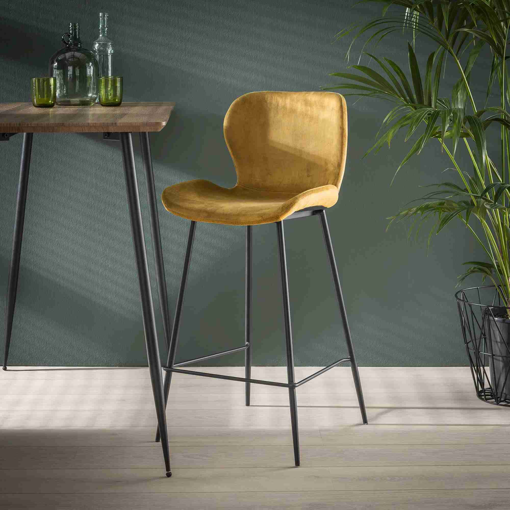 Produktinformationen "4er-Set Barhocker Pipvel mit Lehne - Samt, Ocker"