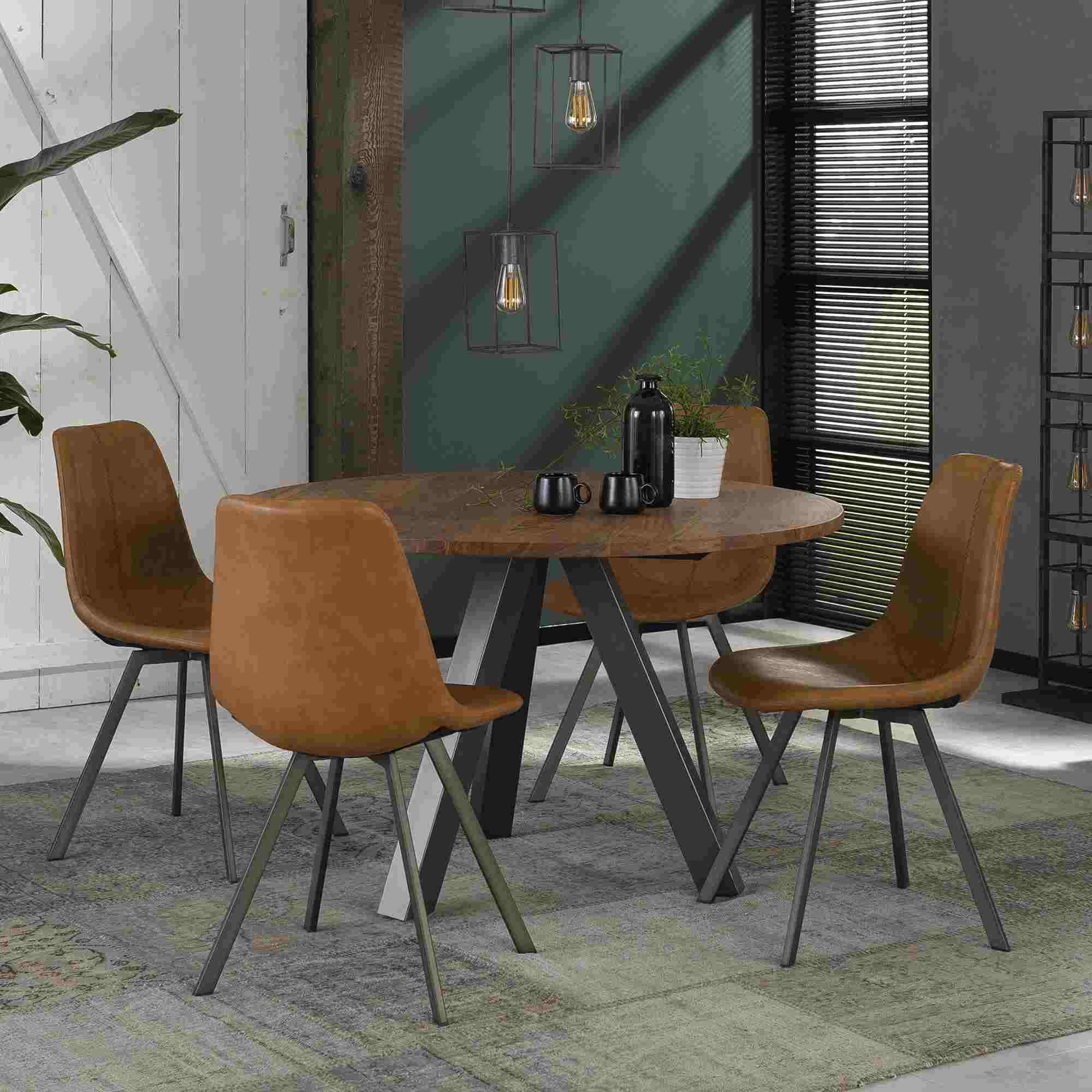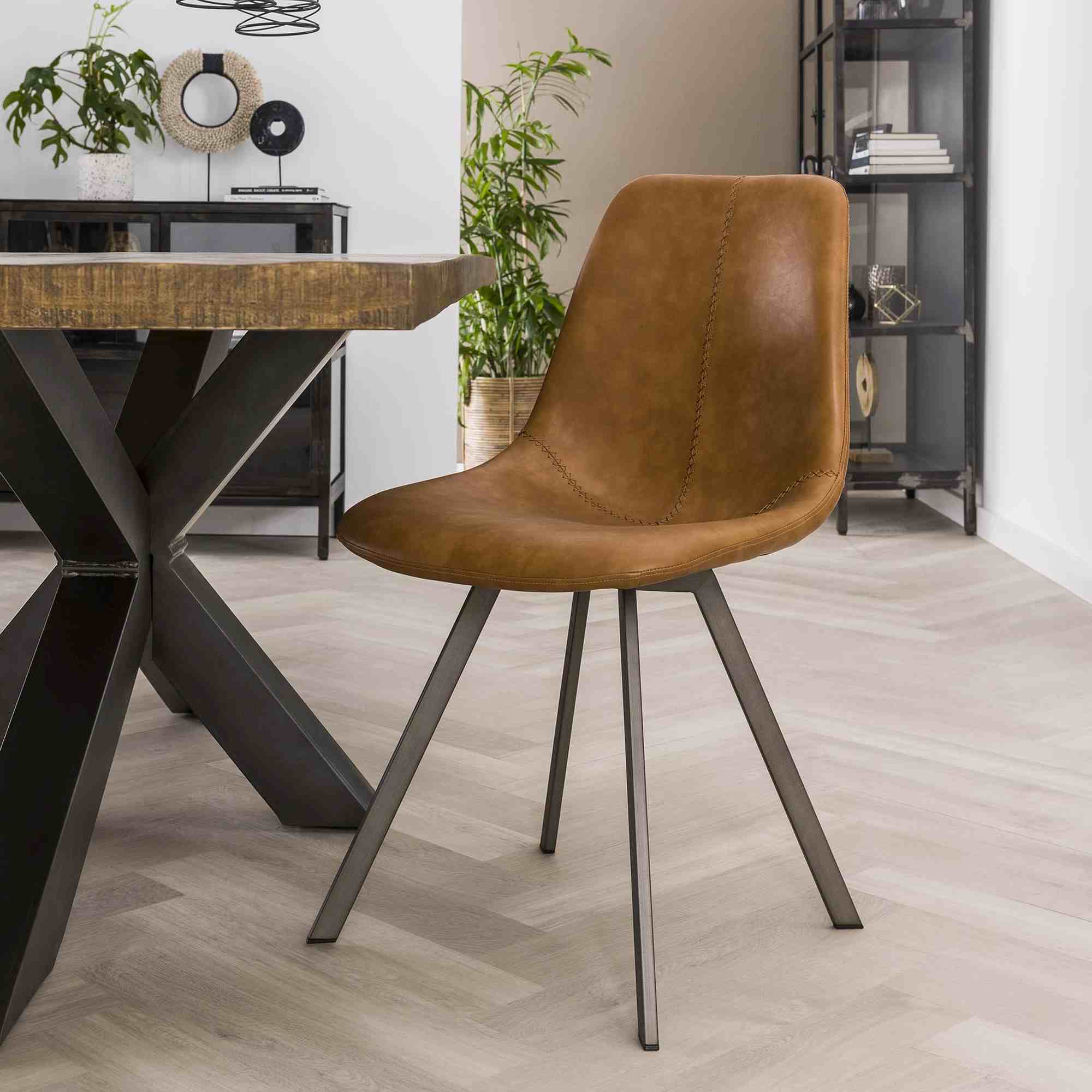 Produktinformationen "4er-Set Esszimmerstuhl Edeostol - Kunstleder, Cognac"