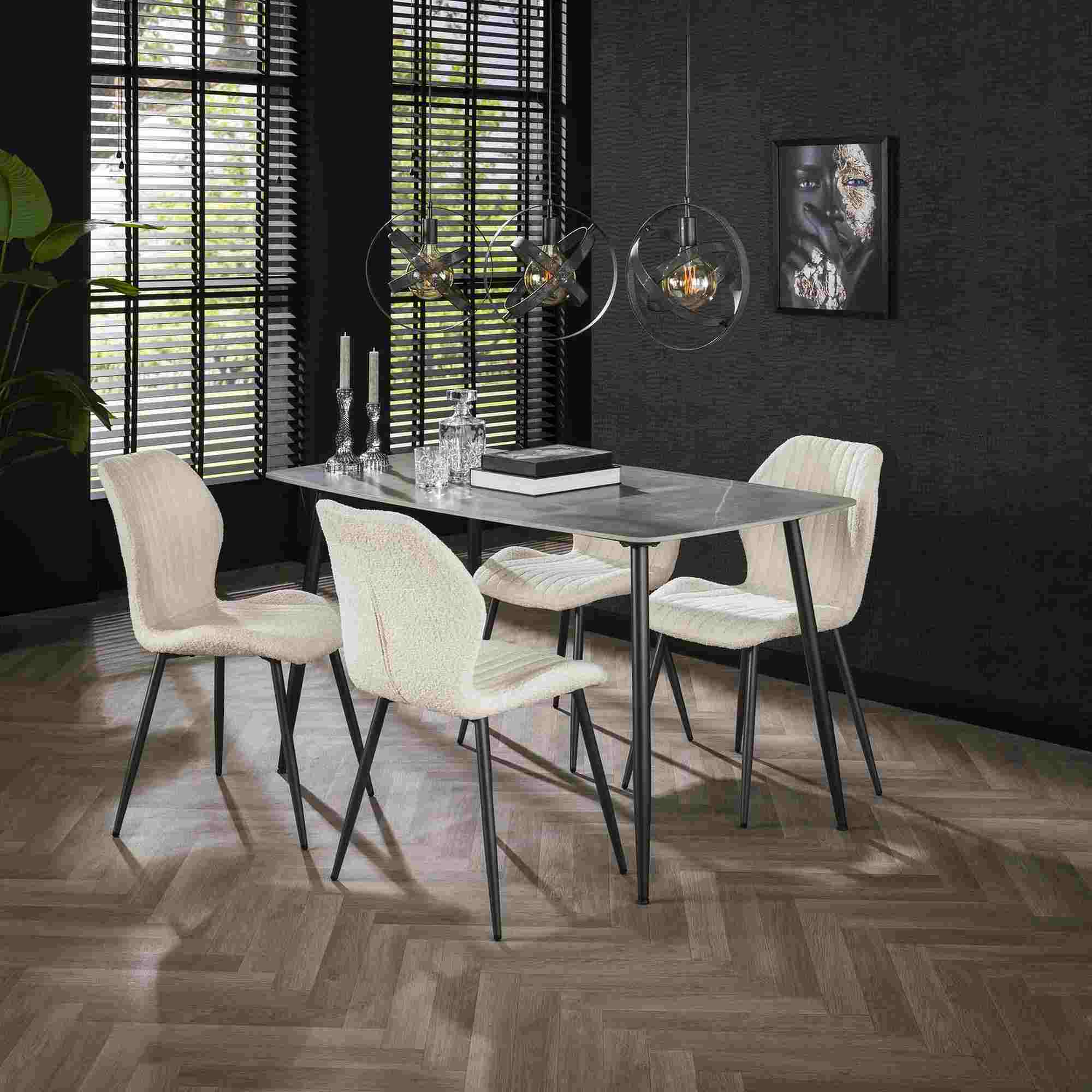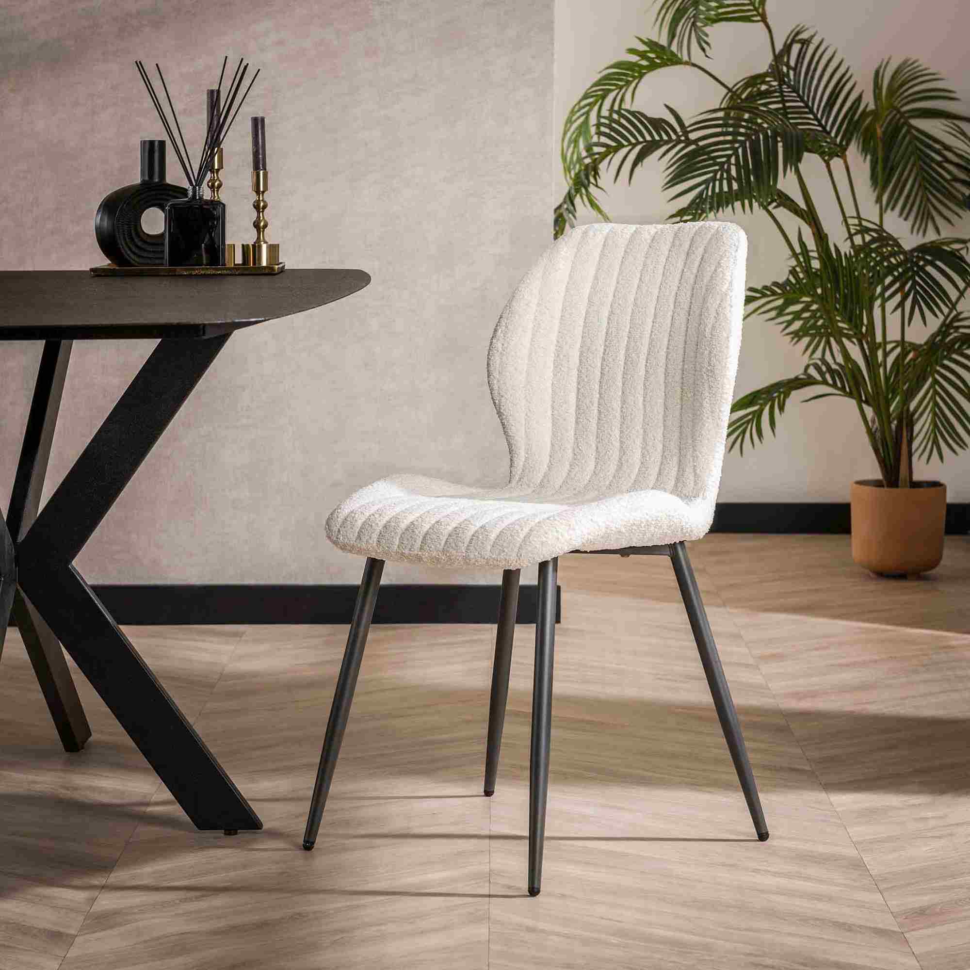 Produktinformationen "4er-Set Esszimmerstuhl Lumbclé mit Lendenstütze - Boucle, Weiß"