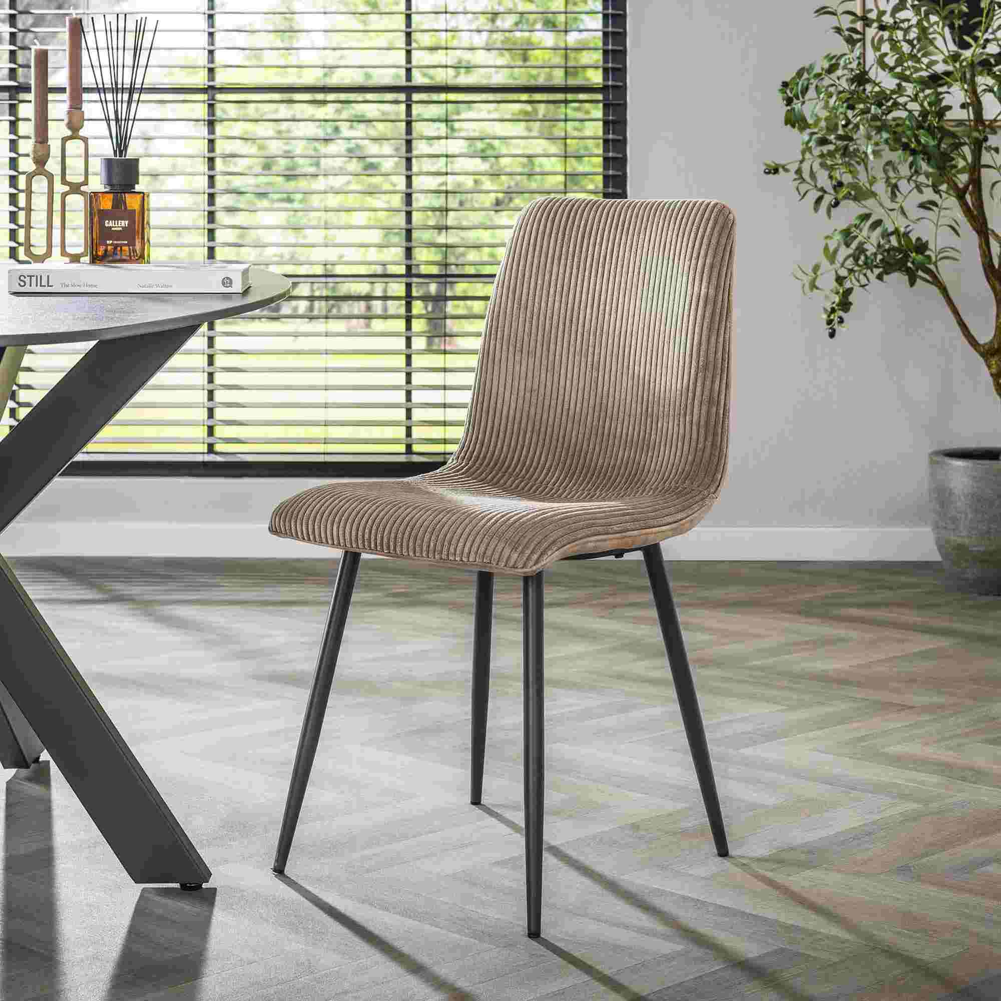 Produktinformationen "4er-Set Esszimmerstuhl Ribcaro - Cord-Bezug, Sand"