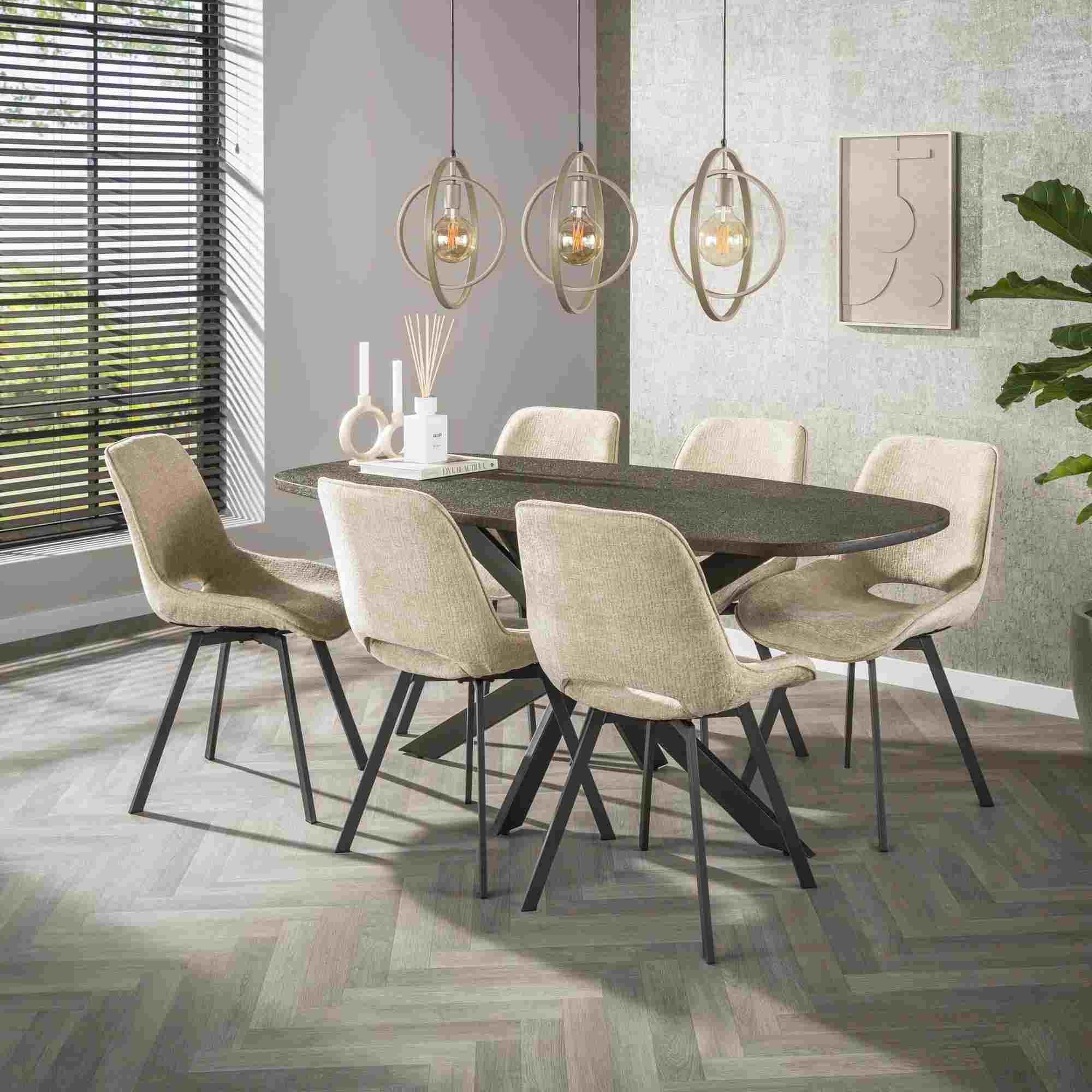 Produktinformationen "4er-Set Stuhl Levi 360° drehbar mit Stoffbezug, Sand"