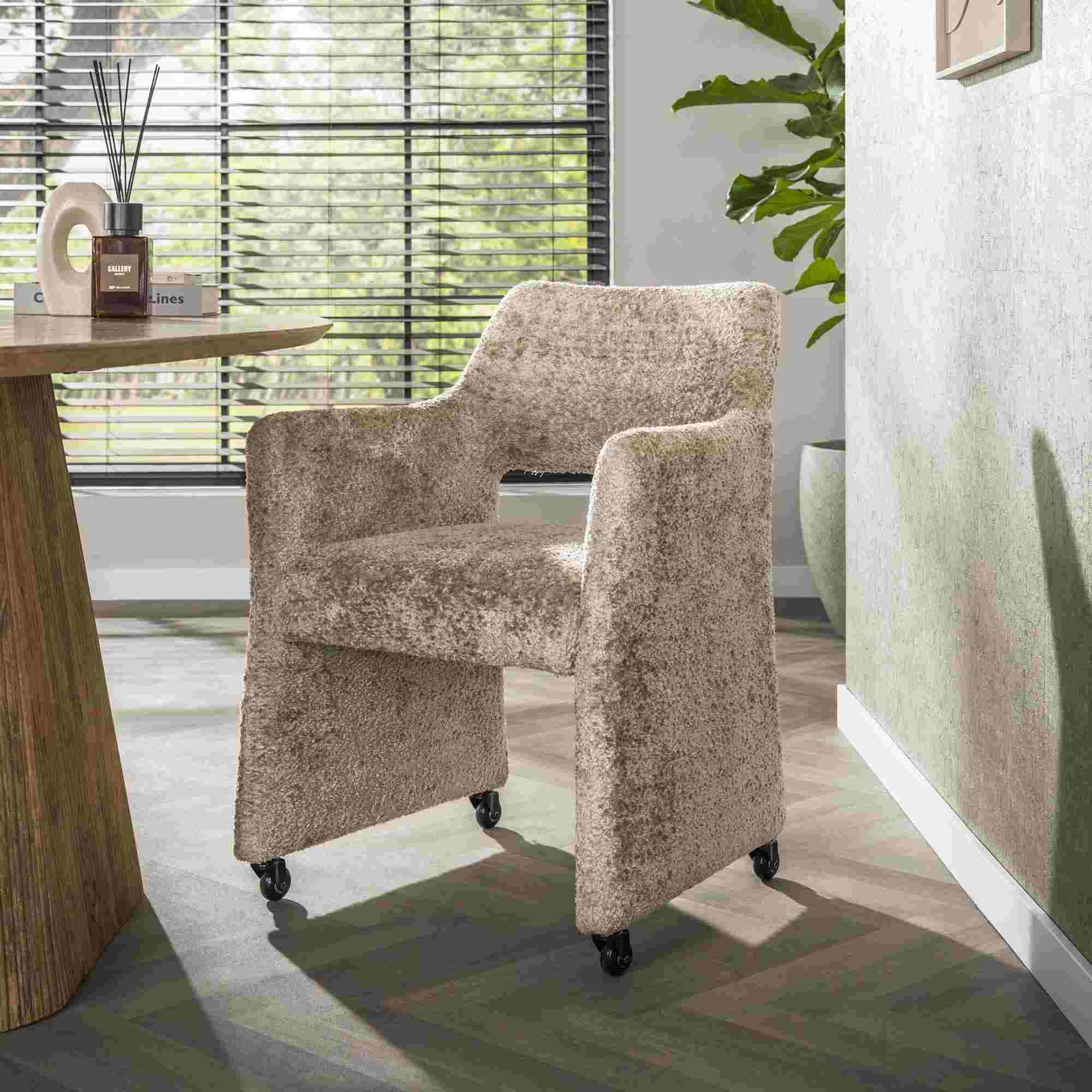 Produktinformationen "Armstuhl Amro 2er-Set mit Rollen und Teddy-Stoff, Sand"