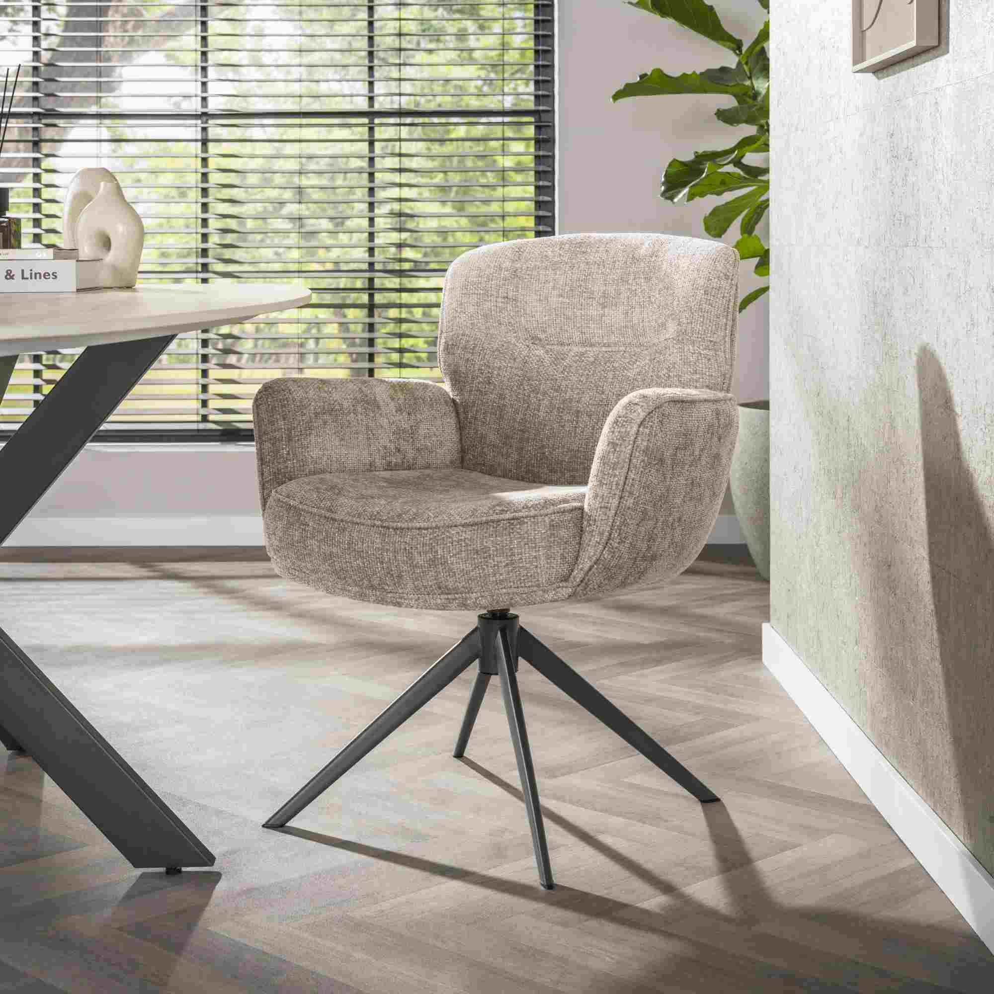 Produktinformationen "Armstuhl Azora 2er-Set mit Drehfunktion mit Chenille-Bezug, Sand"