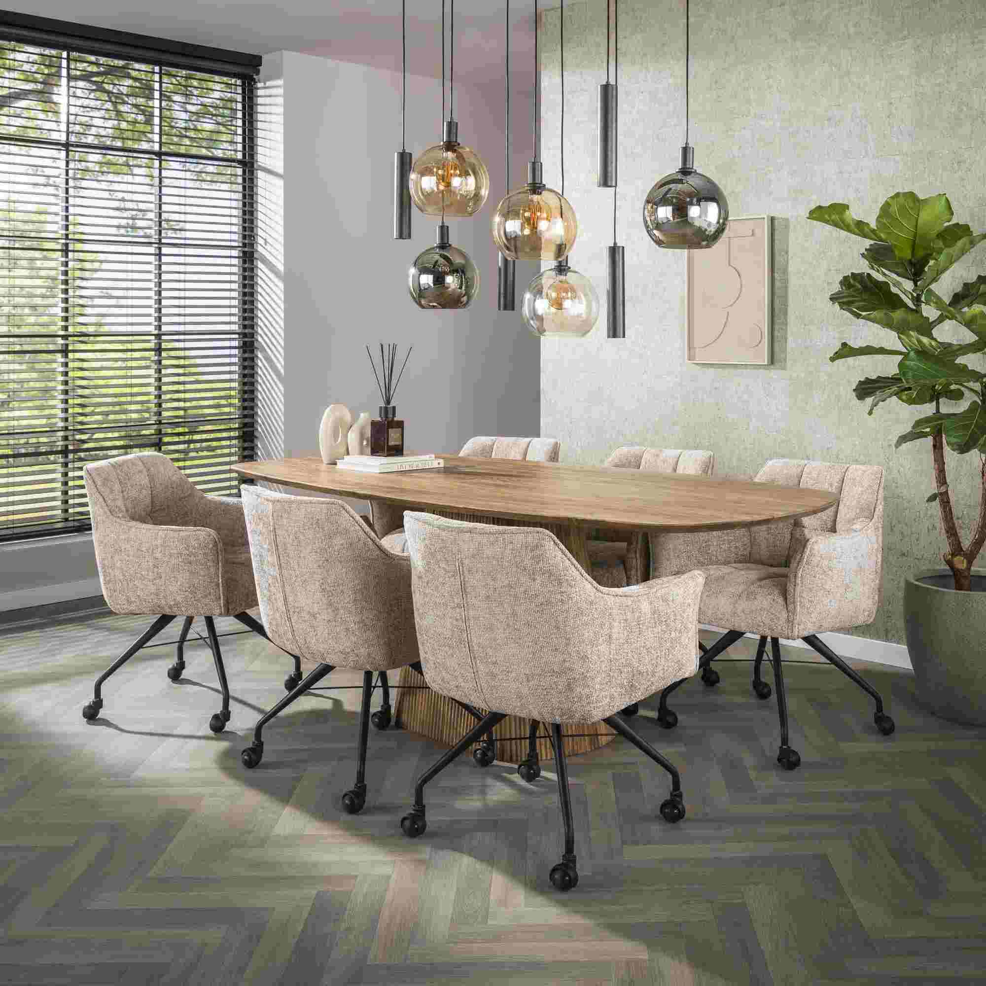 Produktinformationen "Armstuhl Retar 2er-Set auf Rollen mit Steppnähten, Chenille-Bezug, Sand"