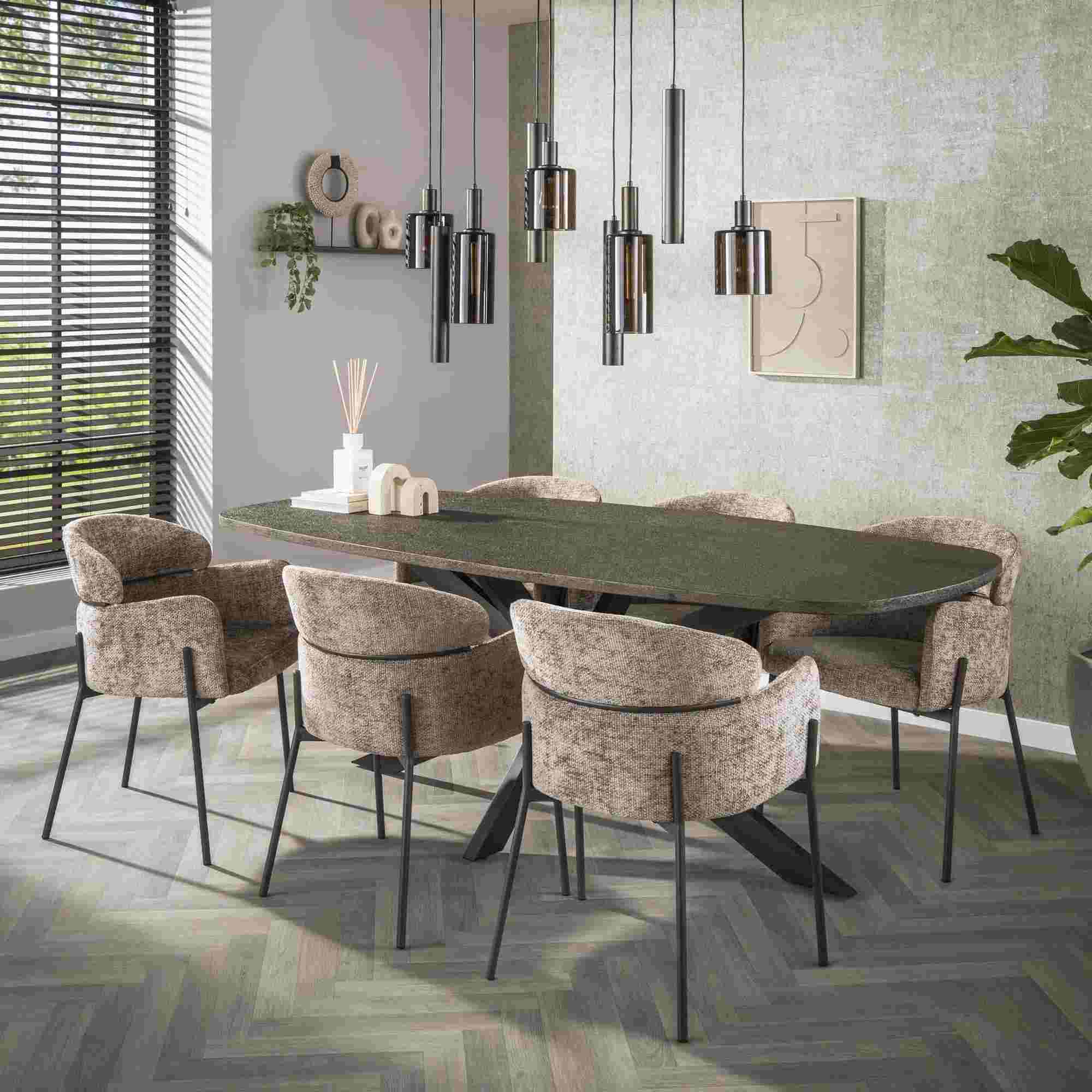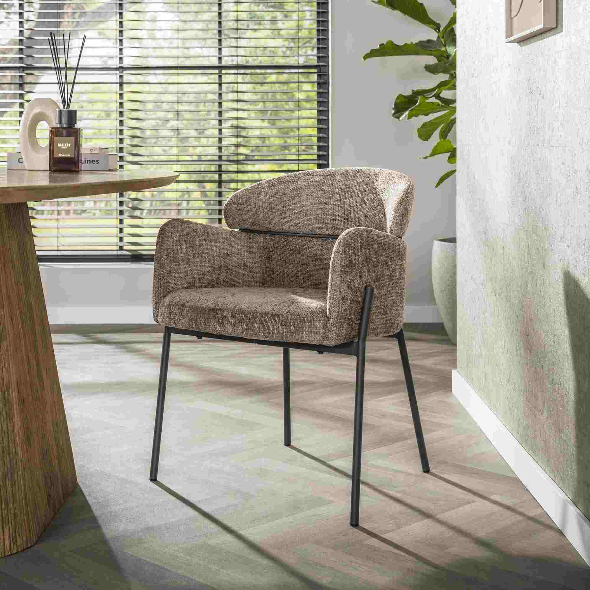 Produktinformationen "Armstuhl Vura 2er-Set mit Chenille-Bezug und Metallgestell, Champagne"