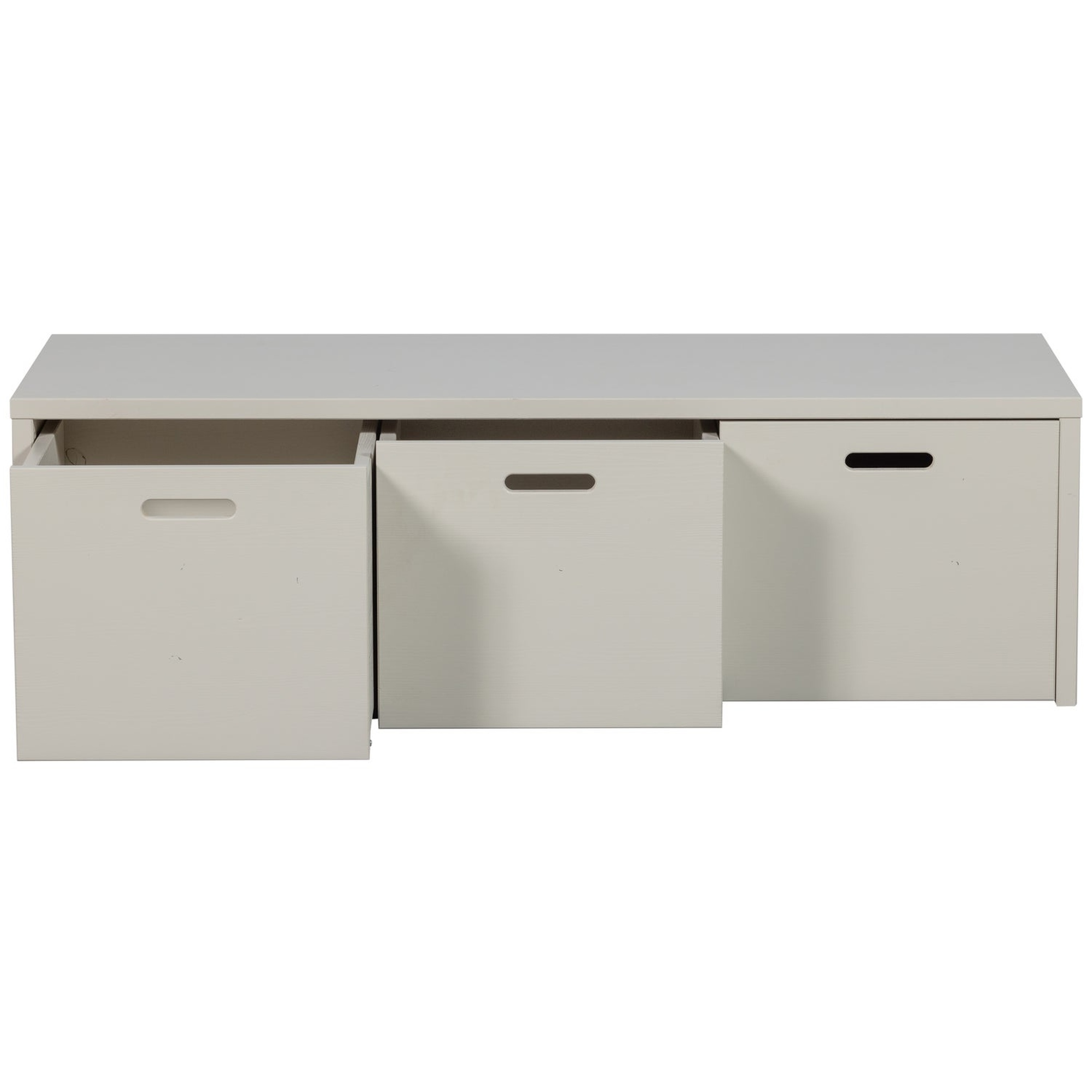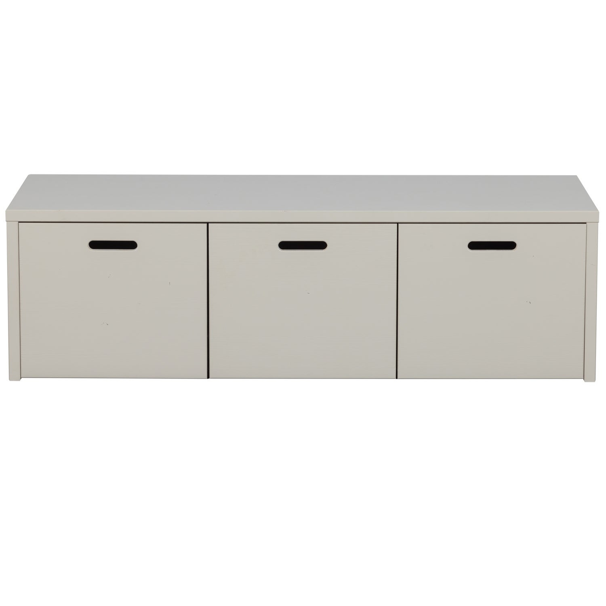 Produktinformationen "Aufbewahrungsbank Silke Kiefer [FSC] Hellgrau - robust mit Stauraum & 3 Fächern, 120 x 50 x 36 cm"