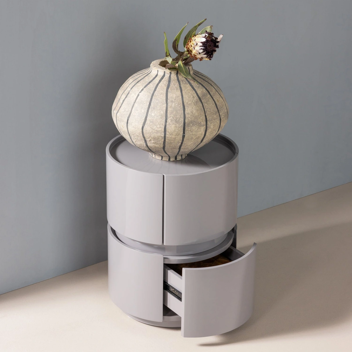 Beistelltisch/Nachttisch Lunex - Hochglanz-Finish Hellgrau