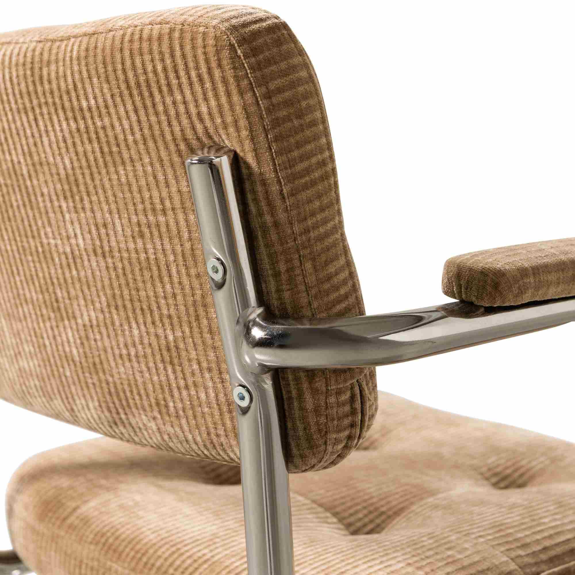 Der hochwertige Rippenstoff aus 100 Prozent Polyester zeichnet sich durch seine weiche Oberfläche und Strapazierfähigkeit aus. Auch bei intensiver Nutzung überzeugt der Stuhl durch die Martindale-Zahl von 30000 und seine solide Verarbeitung. Das pulverbeschichtete Metallgestell bringt Stabilität und verleiht dem Stuhl einen modernen Akzent in Chrom. Zusätzlichen Komfort bieten gepolsterte Armlehnen, die optimal auf deine Haltung abgestimmt sind. Sollte beim Arbeiten mal etwas daneben gehen, lassen sich Flecken einfach mit einem Mikrofasertuch und mildem Reinigungsmittel beseitigen – unkompliziert und alltagstauglich.