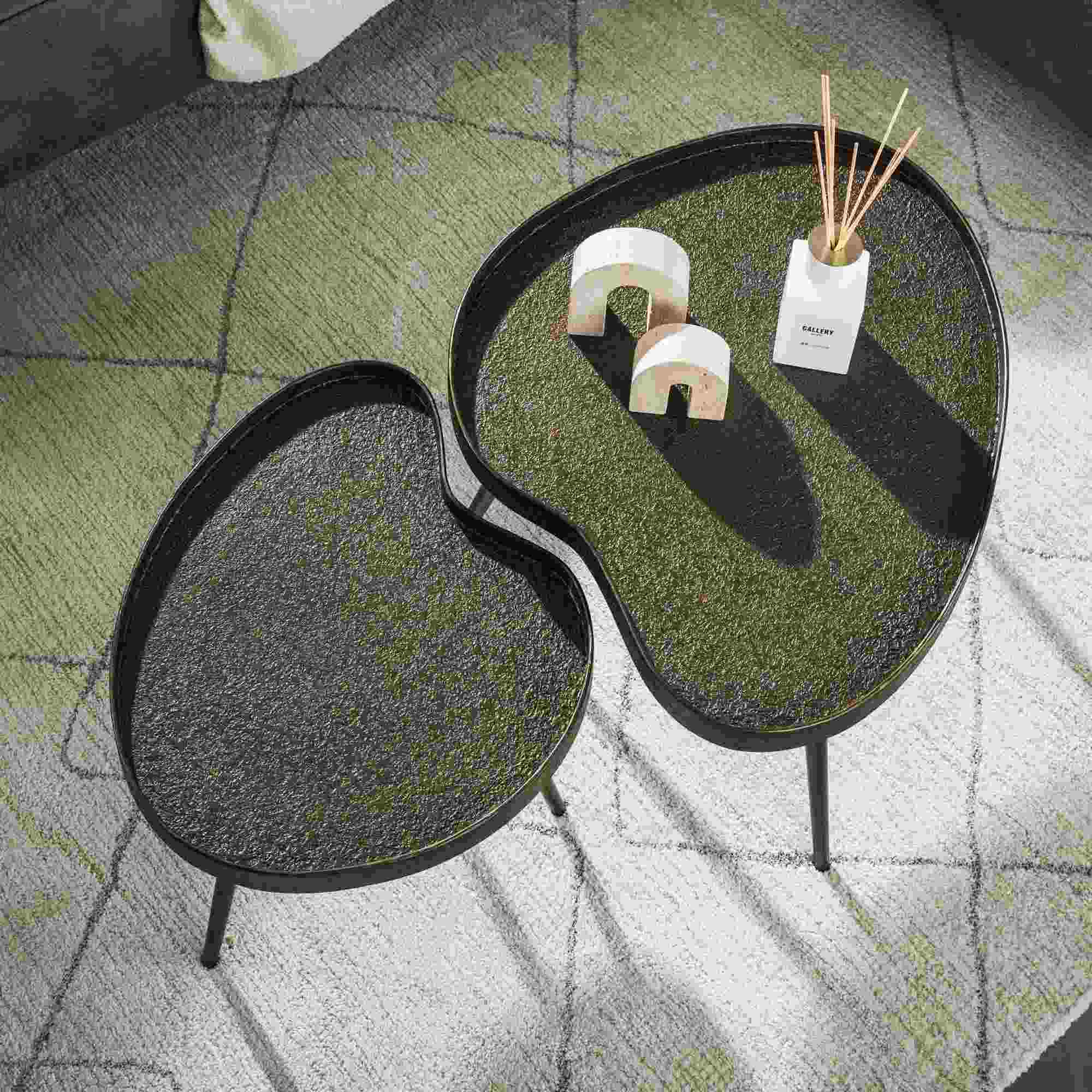 Produktinformationen "Couchtisch 2er-Set Routon - bronzefarbenes Metallic-Finish, Nierenform"