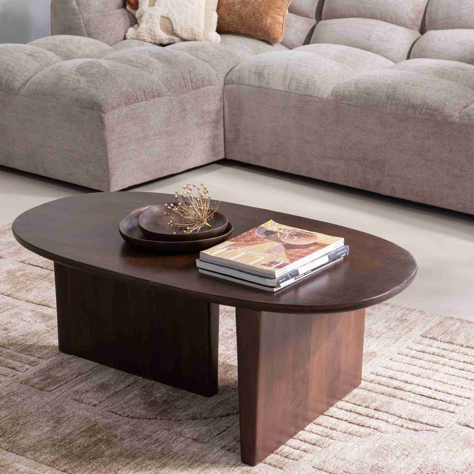 Produktinformationen "Couchtisch Seam aus Mangoholz in Dunkelbraun - stilvoll, verspieltes Beindesign"