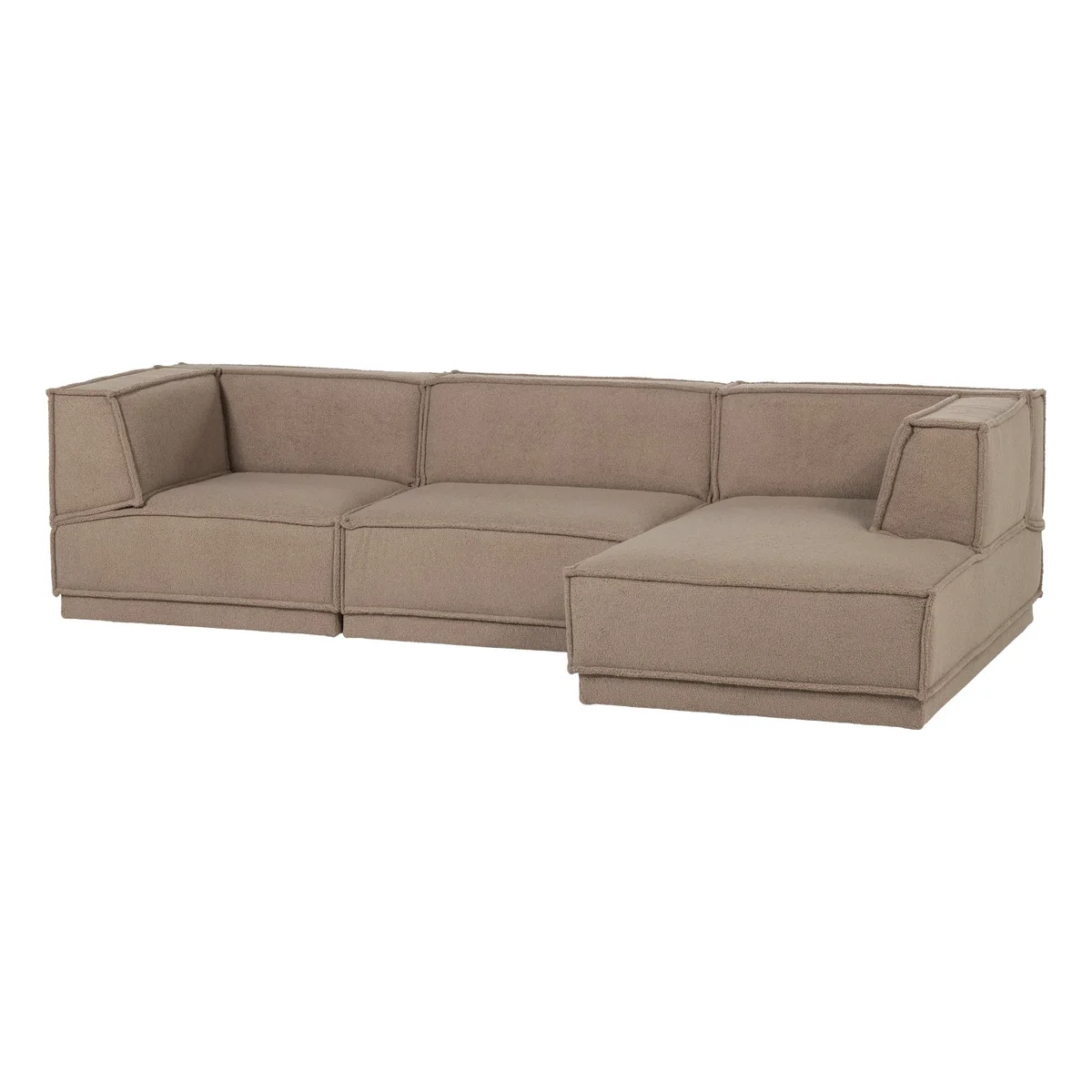 Ecksofa Chaiselongue Manu - Teddy-Stoff Taupe, Rechts