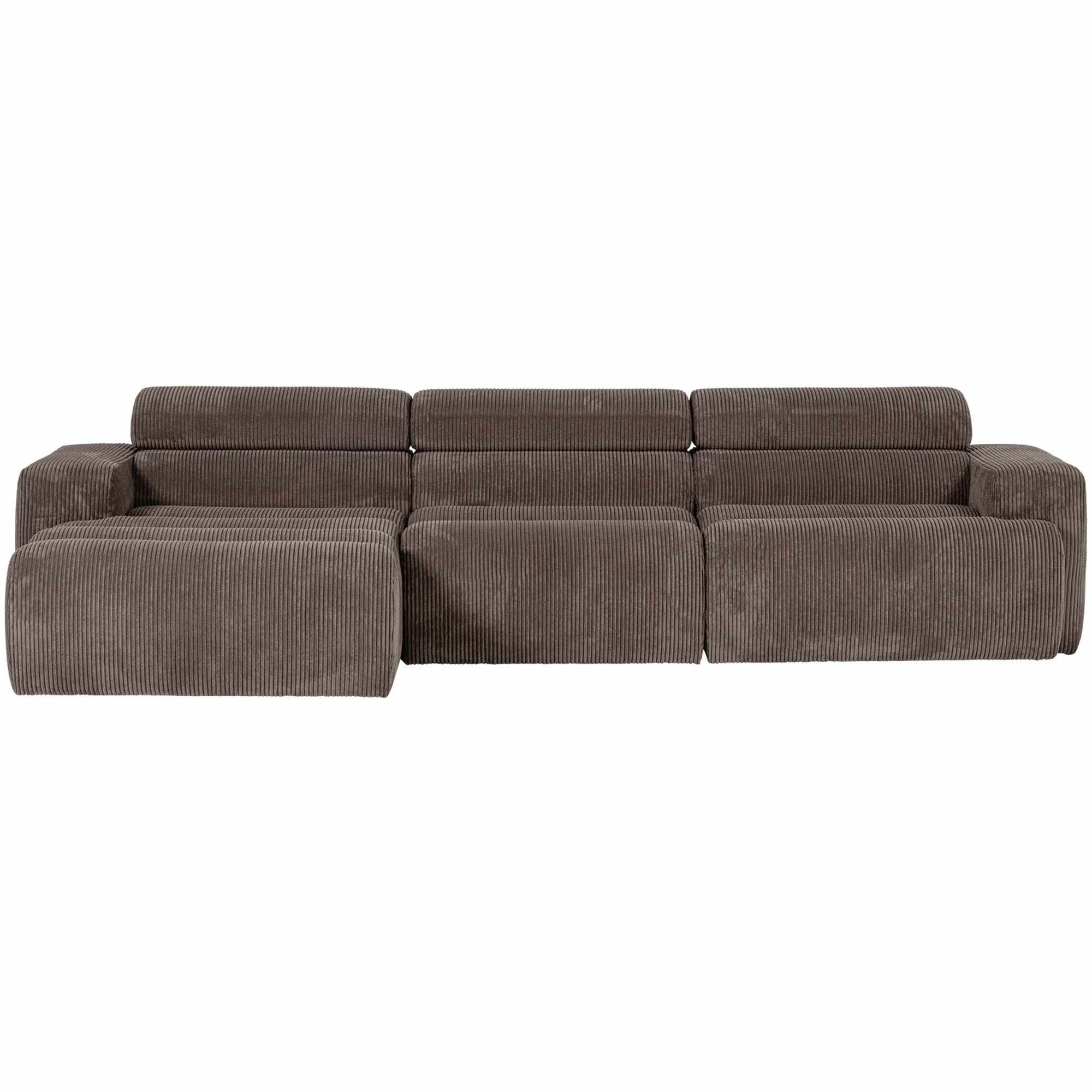 Produktinformationen "Ecksofa Novi Cord Grau-Braun - Chaiselongue mit verstellbarer Nackenstütze, Links"