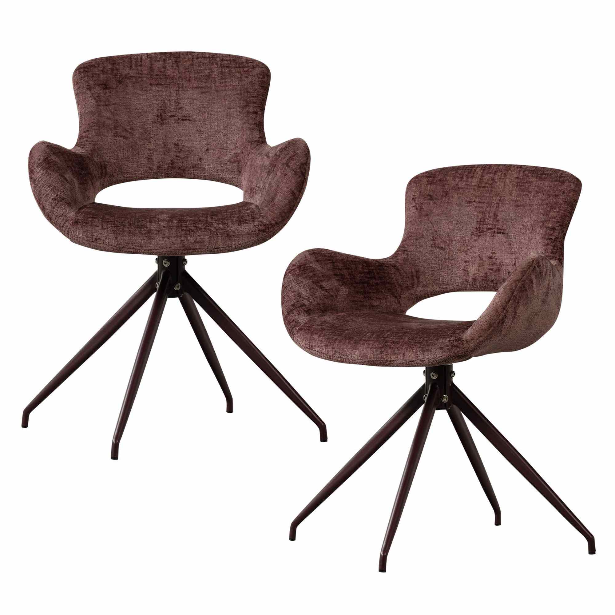 Produktinformationen "Esszimmerstuhl Eliva 2er-Set aus groben Samt in Lila – luxuriös, drehbare mit Metallgestell"
