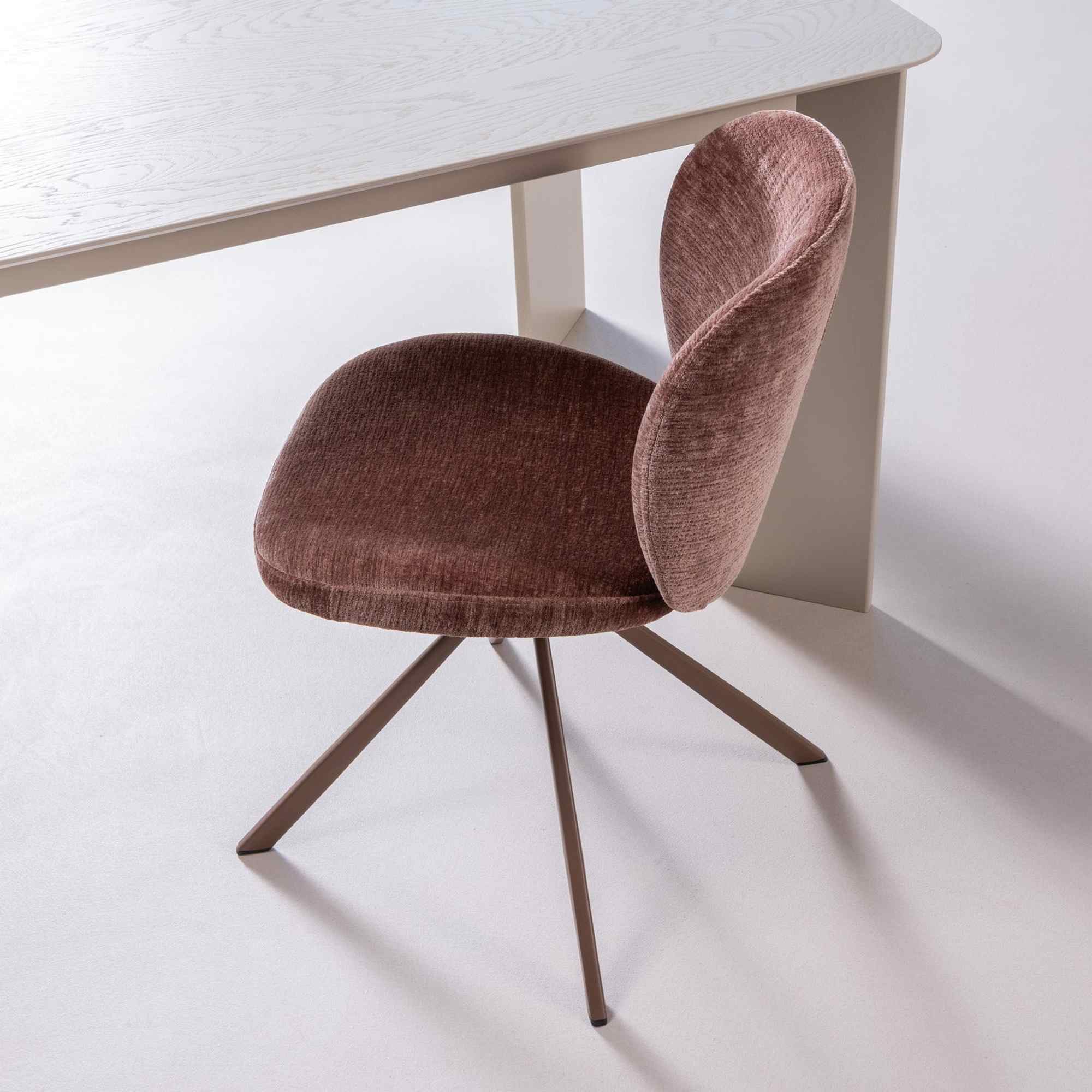 Mit Femke entsteht in deinem Essbereich ein Ort voller Wärme und Geborgenheit. Die Kombination aus klaren Linien, elegantem Braun und der weichen Haptik des Chenille-Stoffs schafft ein einladendes Ambiente, das zum gemeinsamen Verweilen einlädt. Ob beim langen Frühstück oder beim geselligen Abendessen – der Stuhl passt sich durch die praktische Drehfunktion deinen Bedürfnissen an und macht jede Mahlzeit zu einem entspannten Erlebnis. Sein dezentes, modernes Design fügt sich stilvoll in verschiedene Wohnkonzepte ein und setzt gezielte Akzente.