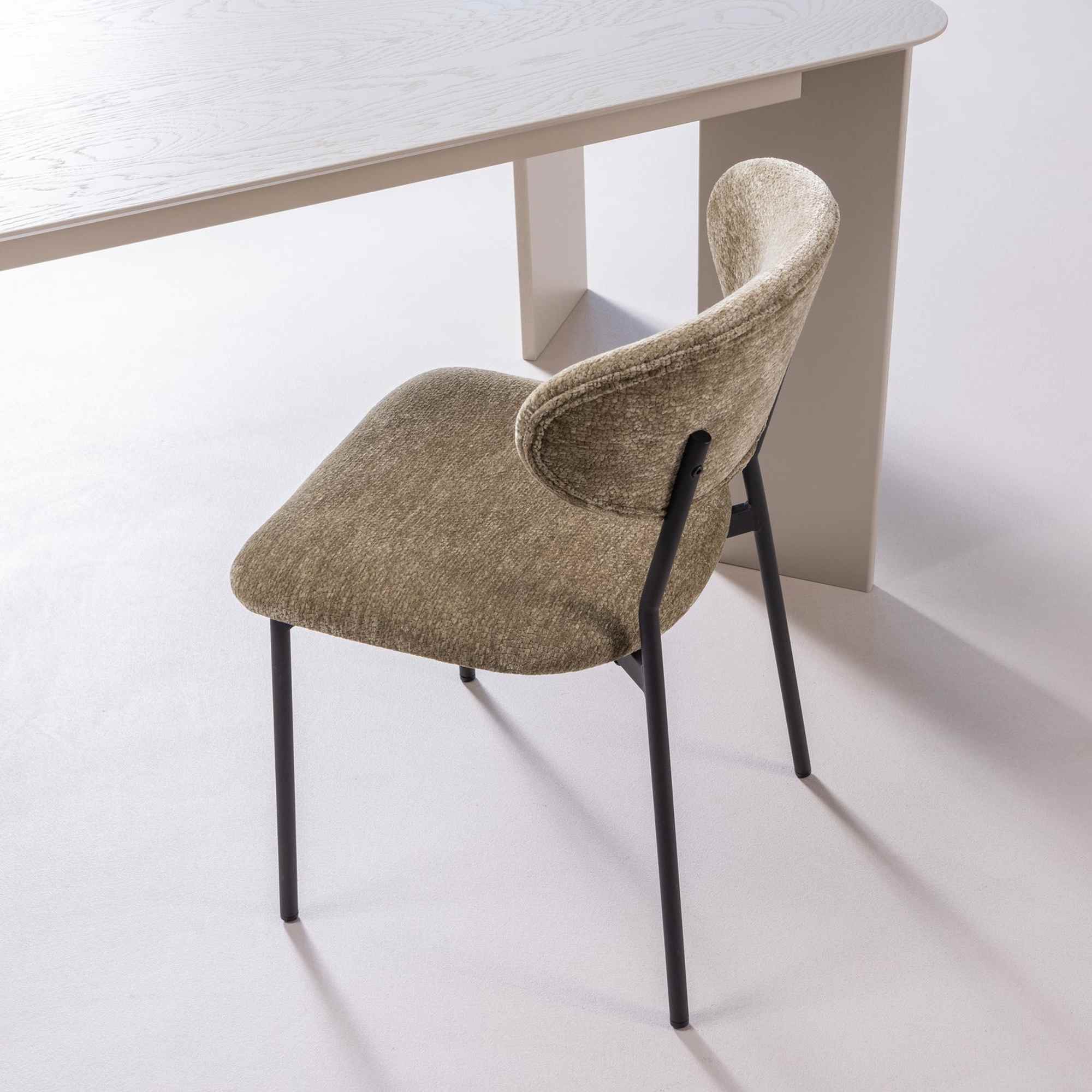 Produktinformationen "Esszimmerstuhl Kjeld 2er-Set aus Chenille in Grün - modern mit mattschwarzem Metallgestell"