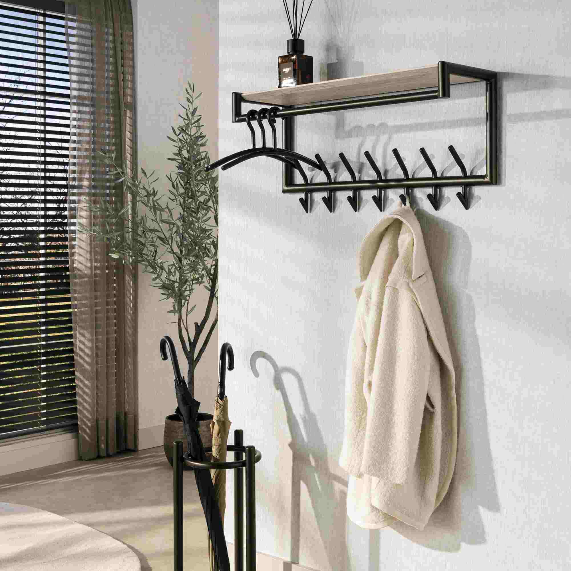Produktinformationen "Garderobe Aret mit Kleiderstange, Hutablage und 7 Haken, 85 cm"