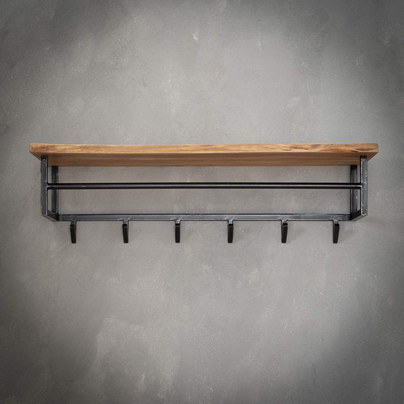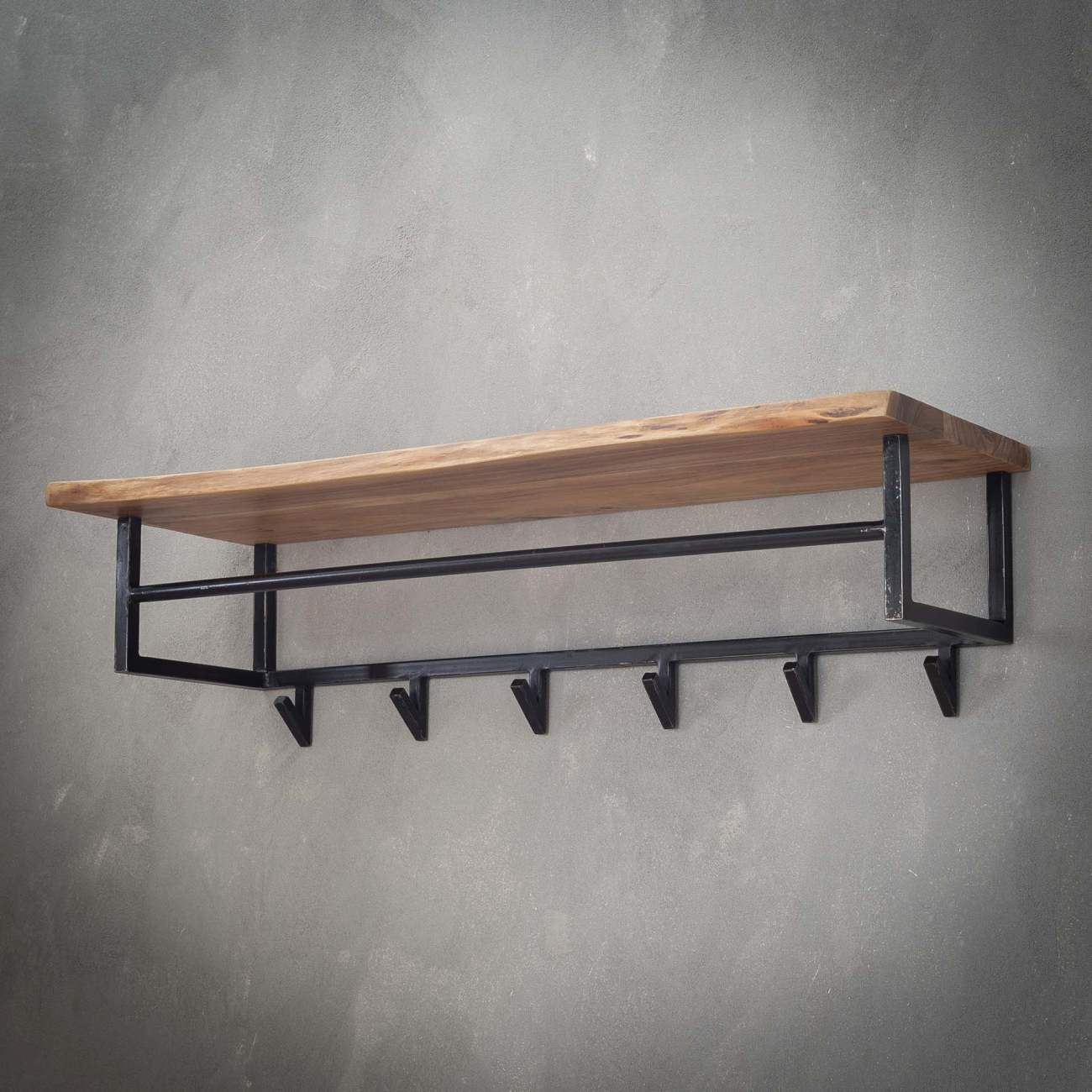 Produktinformationen "Garderobe Bord - Akazienholz massiv Natur, mit Hutablage & 6 Haken"