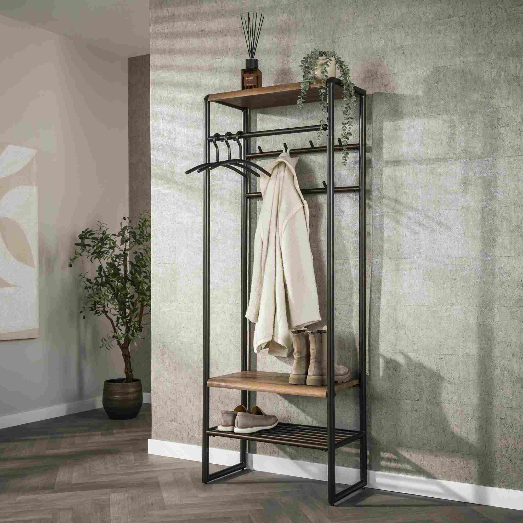 | Hinweis: | Die Garderobe kann Merkmale eines Industrial-Vintage-Designs aufweisen, die ihr ein einzigartiges Aussehen verleihen. |