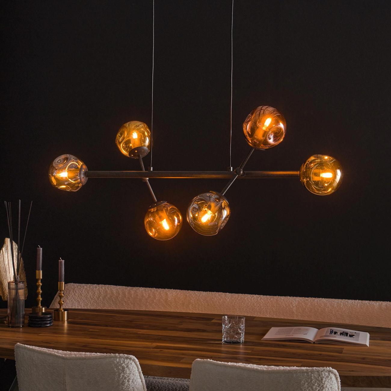 Lieferumfang: | 1 Hängelampe mit 6 Glasschirmen, Aufbauanleitung, 6 LED-Leuchtmittel Globus G45 4,5 cm |