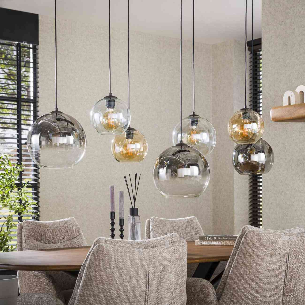 Produktinformationen "Hängeleuchte Bulbusa mit LED, 7-flammig - Bernstein-, Chrom-, Klarglas"