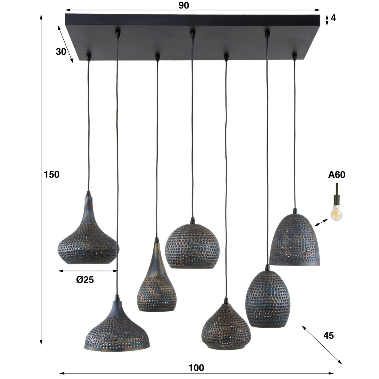 Lieferumfang: | 1 Hängelampe, Bedienungsanleitung, 6 LED-Leuchtmittel A60 Birne, 1 LED G45 Ø 4,5 cm |