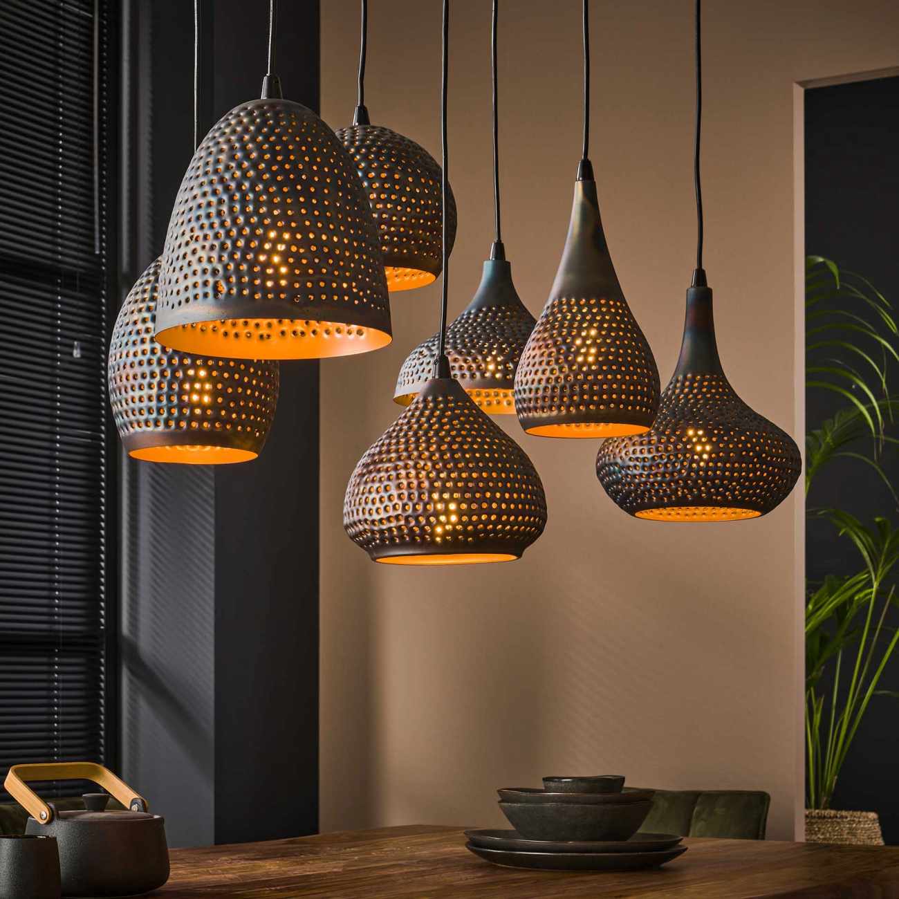 Produktinformationen "Hängeleuchte Metoli, 7-flammig - Metall Schwarzbraun, inkl. LED"
