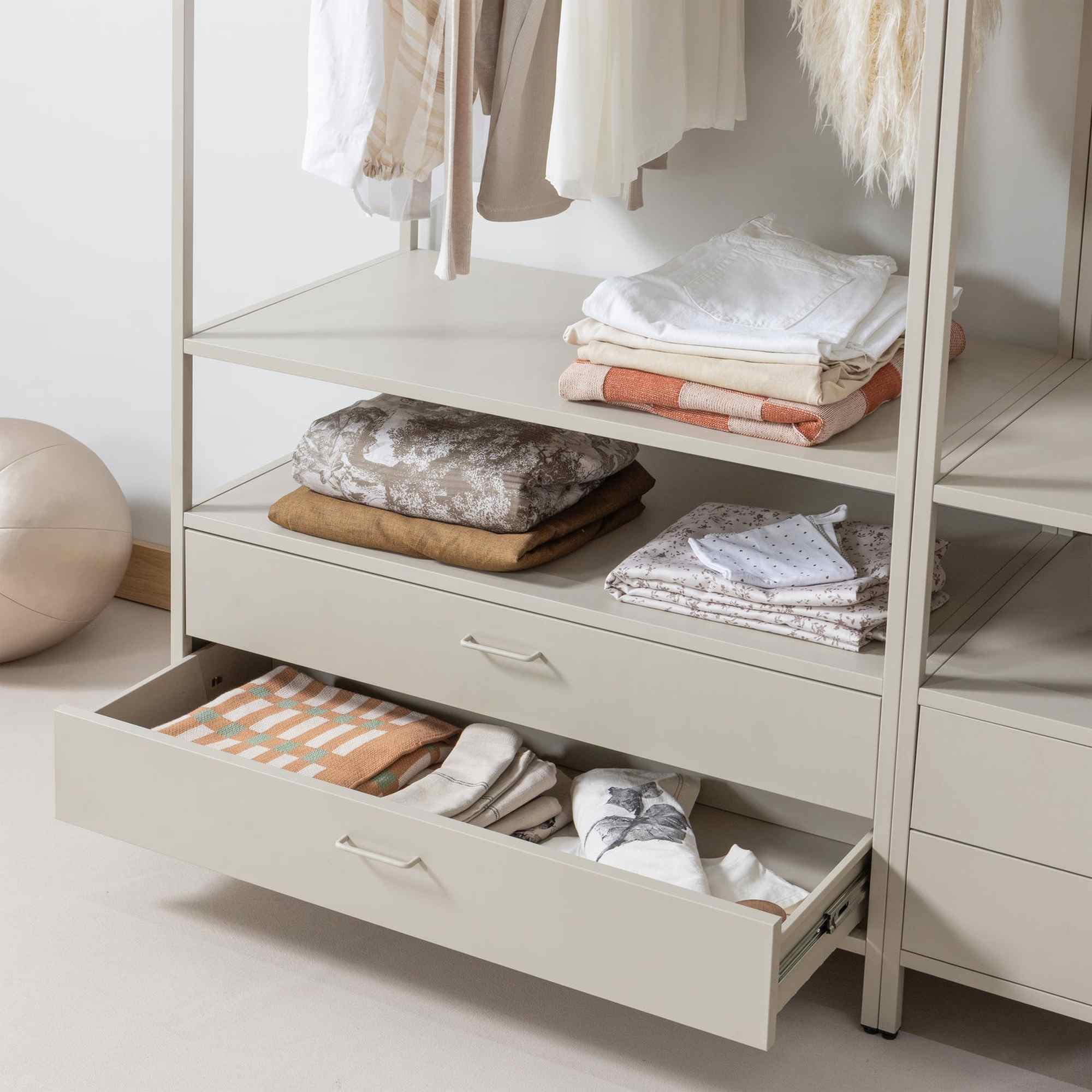 Produktinformationen "Kleiderschrank Ferris aus Metall, modernes Regalsystem, Sand, 100 cm breit, offenes Design"