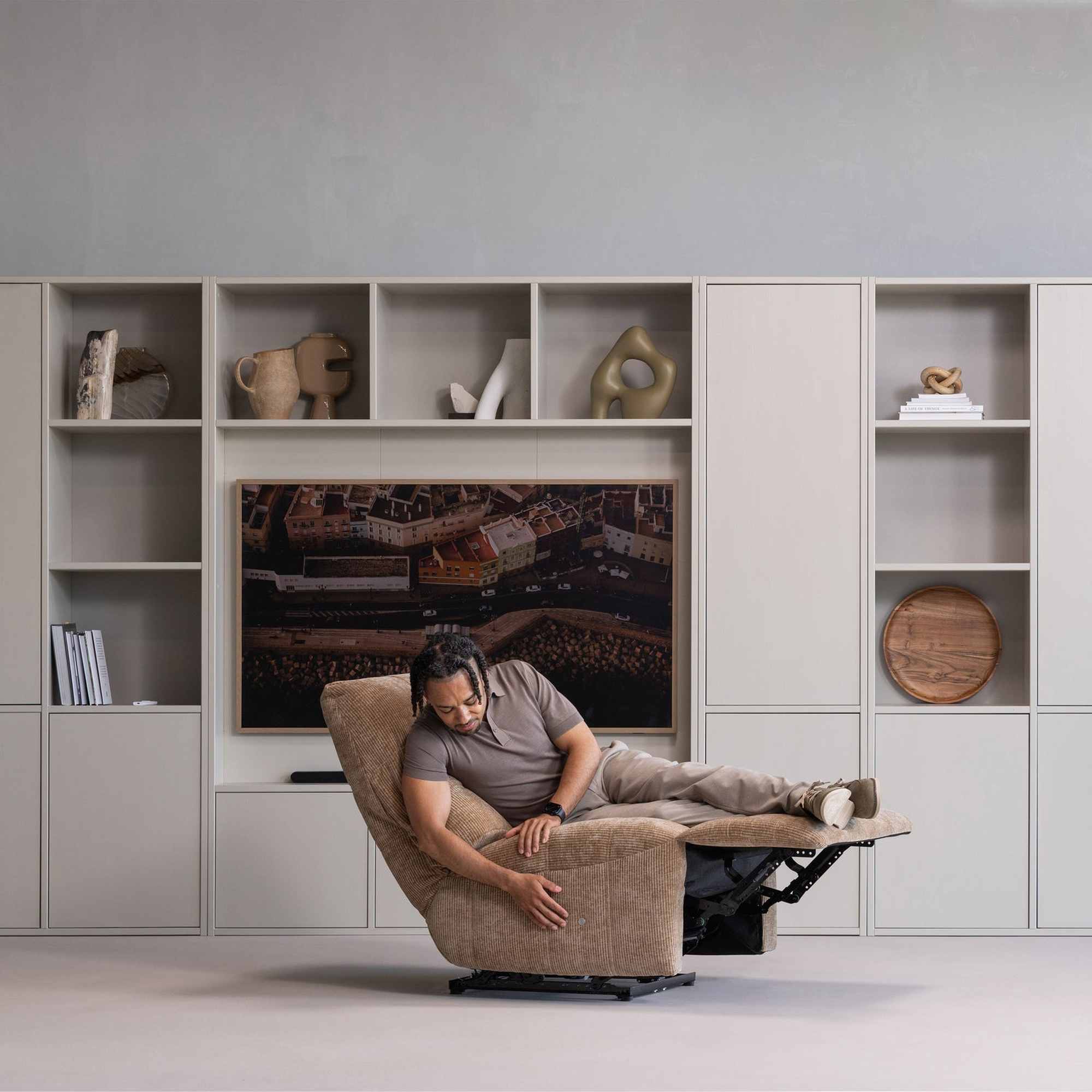 Produktinformationen "Ruhesessel Hein in Hellbraun Cord-Bezug - komfortabler Relaxsessel mit Motorfunktion"