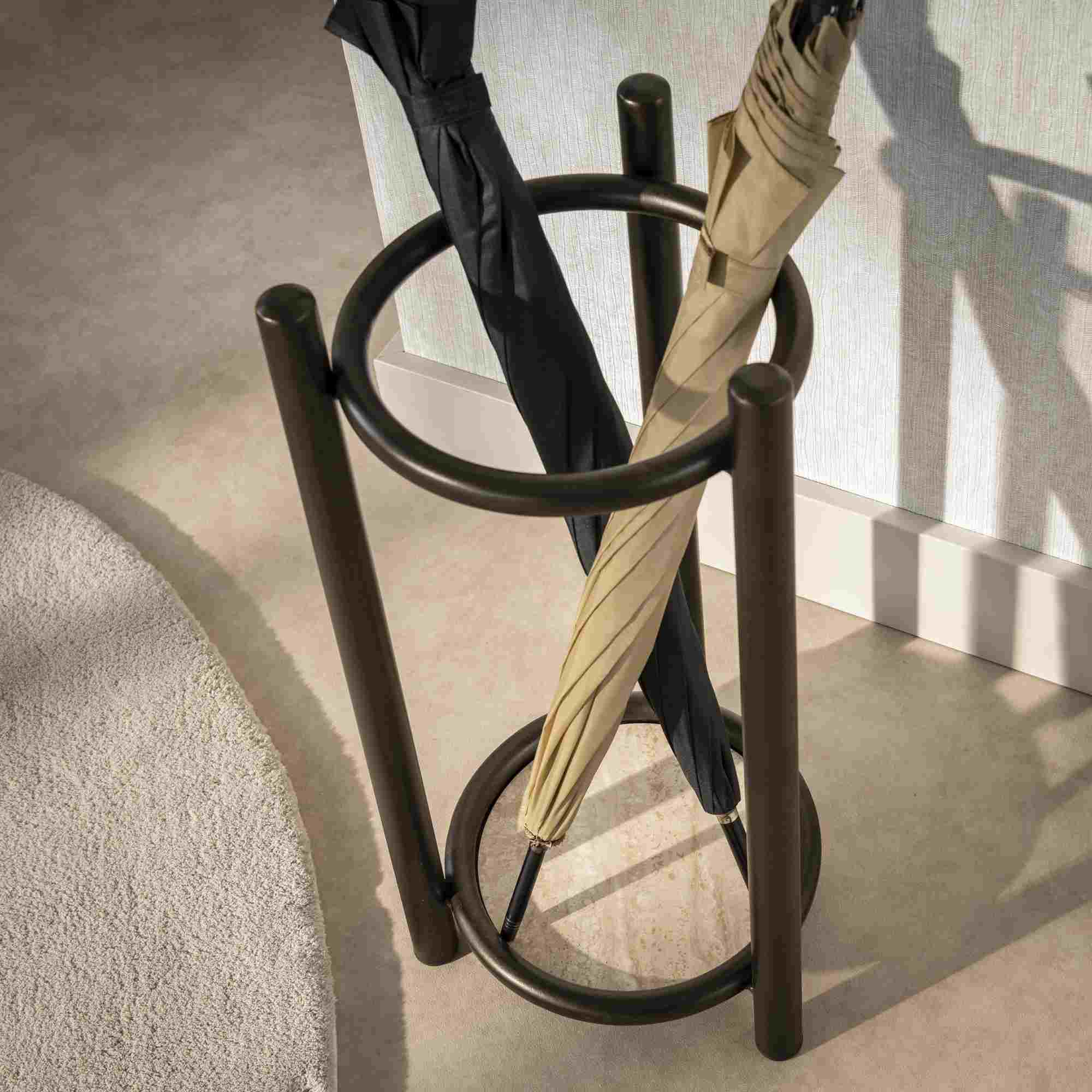 Produktinformationen "Schirmständer Onul aus Metall in Bronze mit Auffangschale"