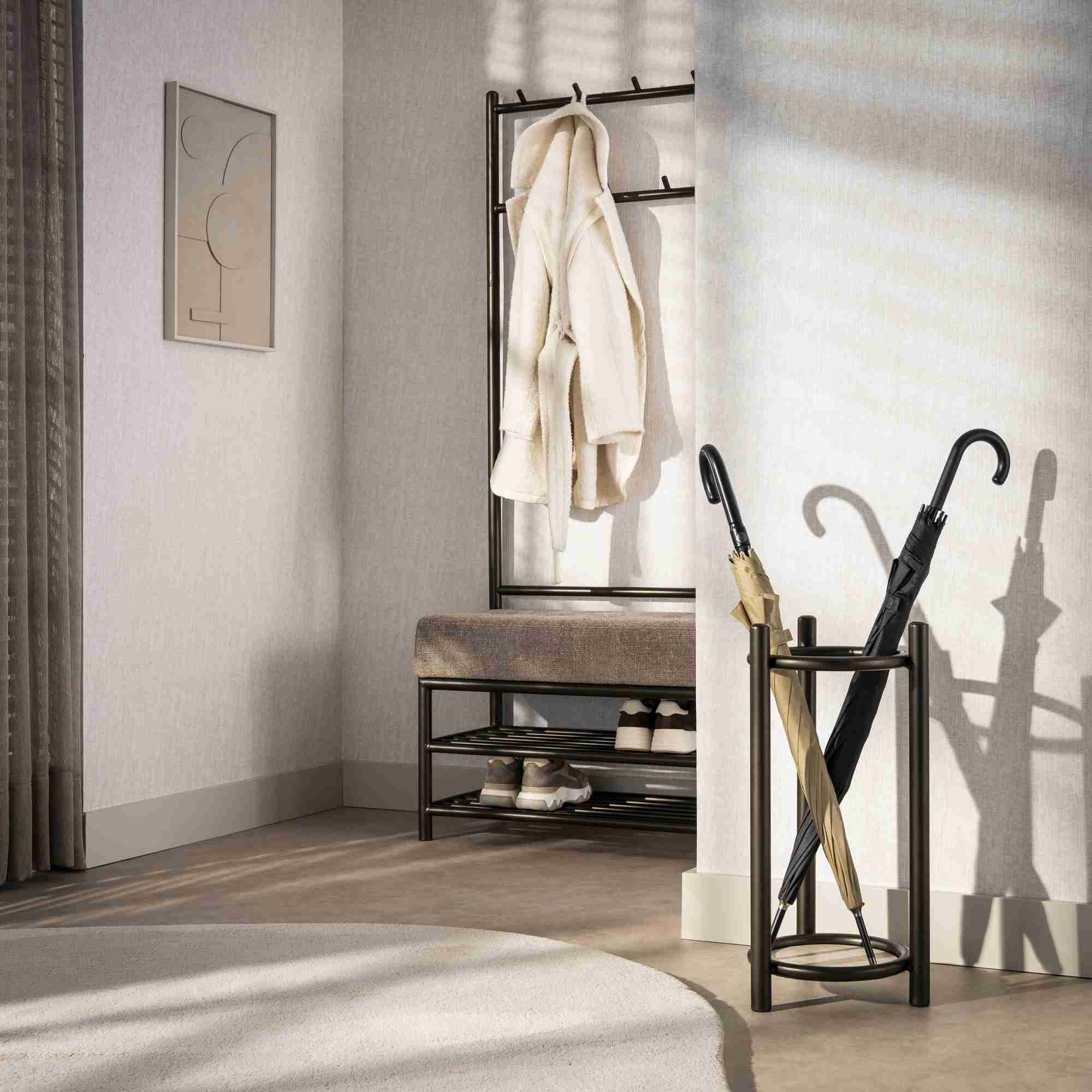Ein Schirmständer ist nicht nur ein praktisches Accessoire für den Eingangsbereich, sondern auch ein funktionales Detail, das Ordnung und Stil in Ihr Zuhause bringt. Mit seiner Aufgabe, Regenschirme sauber und griffbereit aufzubewahren, sorgt er für einen aufgeräumten Eindruck und verhindert zugleich, dass Nässe und Schmutz unkontrolliert in den Raum gelangen. Stellen Sie sich vor, wie ein Schirmständer direkt neben der Tür für Struktur sorgt und gleichzeitig als dezentes Gestaltungselement wirkt. Er bietet Platz für verschiedene Schirmarten und trägt dazu bei, dass diese nach dem Gebrauch ordentlich abgestellt und getrocknet werden können. Schirmständer sind in zahlreichen Designs, Formen und Materialien erhältlich – von modern und minimalistisch bis hin zu klassisch oder dekorativ – und fügen sich harmonisch in unterschiedliche Wohnstile ein. Neben seiner praktischen Funktion ist er auch ein stilvolles Accessoire, das den Eingangsbereich abrundet. Entdecken Sie die Vorteile eines Schirmständers und machen Sie ihn zu einem nützlichen Begleiter für jede Jahreszeit. Genießen Sie die Kombination aus Ordnung, Komfort und ansprechendem Design gleich beim Betreten Ihres Zuhauses.