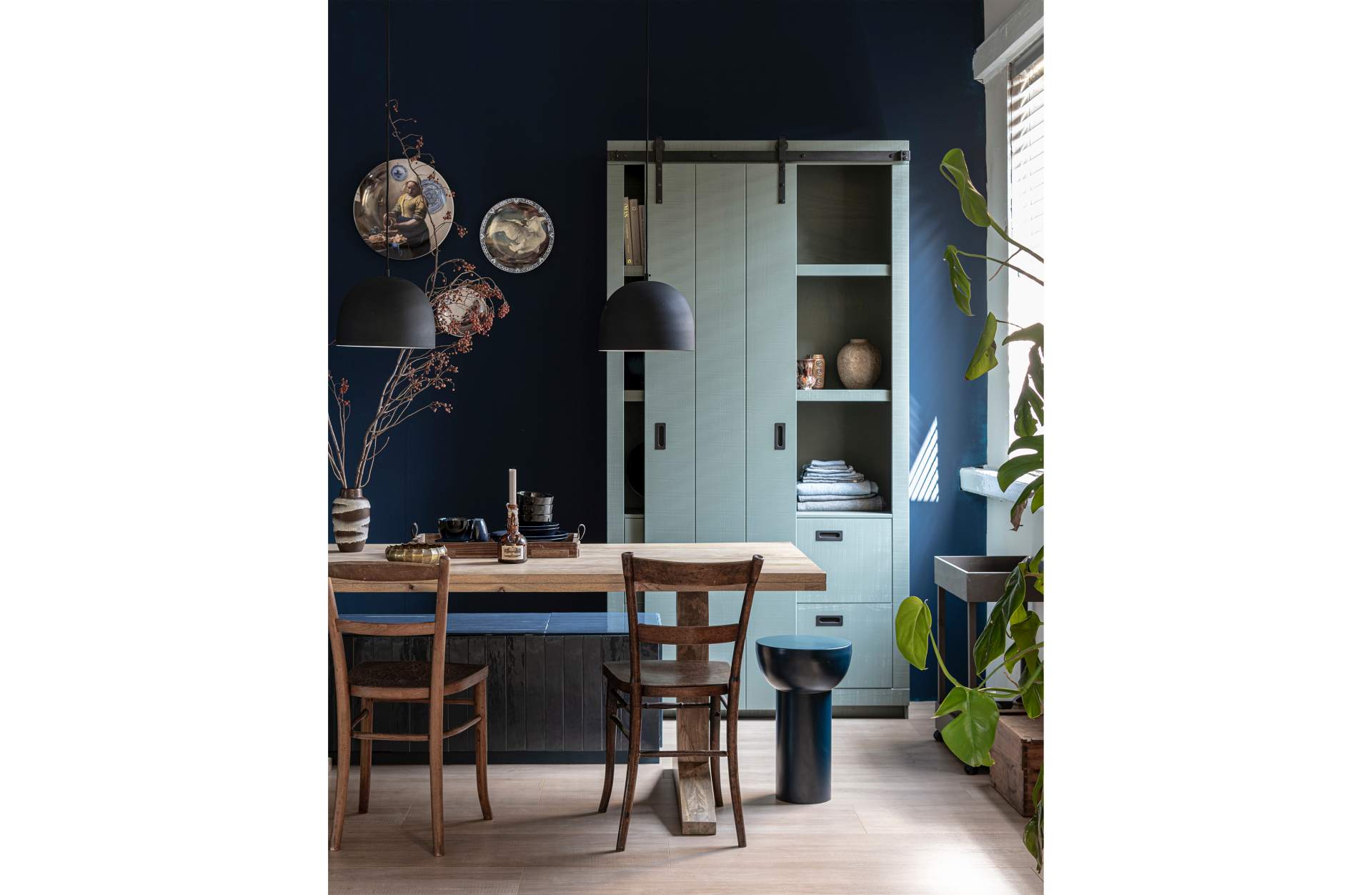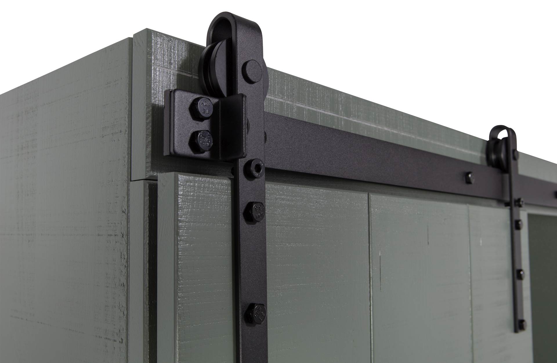 | Eigenschaften: | Die Tür hängt oben in einer schwarzen Metallschiene und lässt sich leicht von links nach rechts verschieben. |