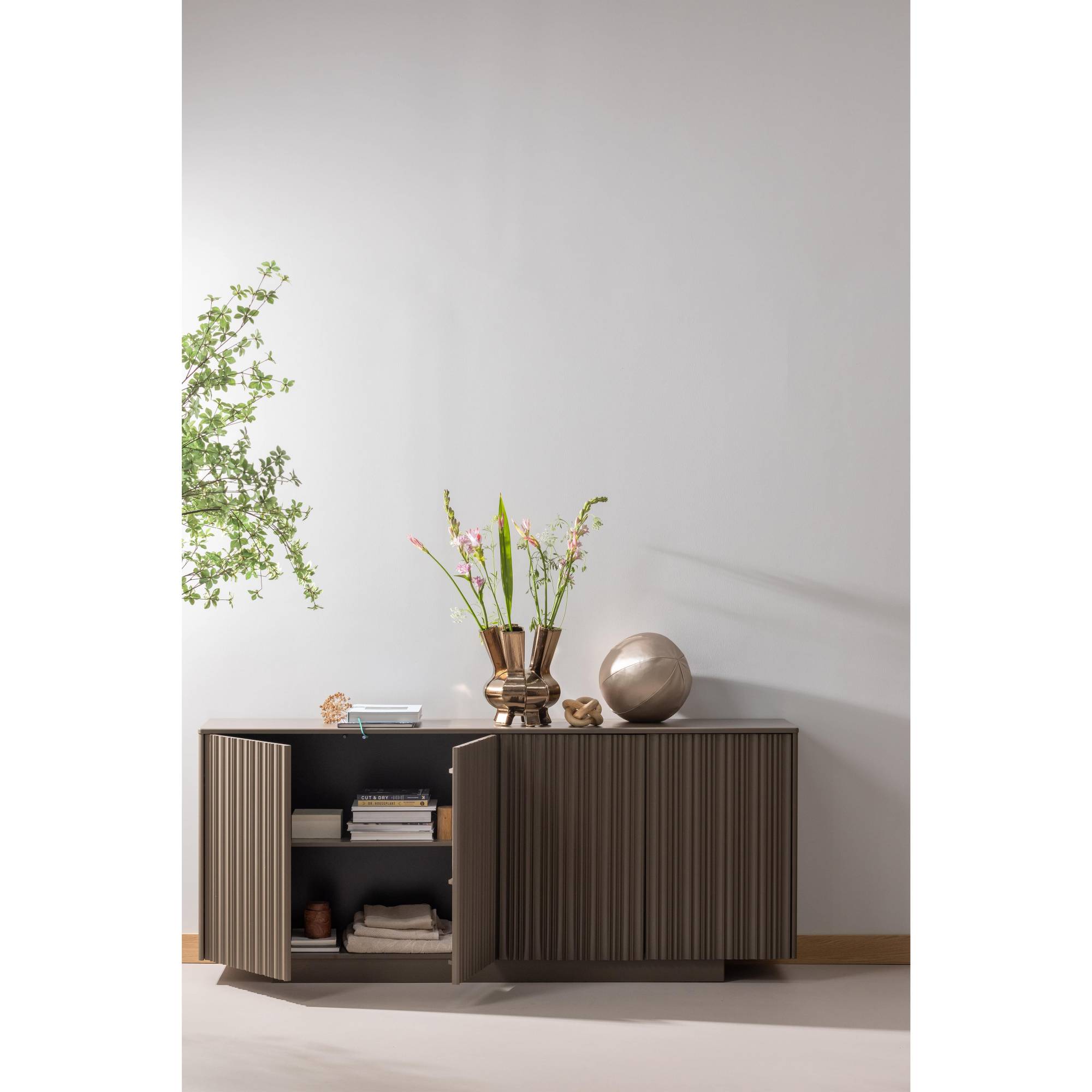 Produktinformationen "Sideboard Nova 200 cm Kiefer [FSC] Trüffle Braun - modern mit grafisch reliefierten Türen, 200 x 40 x 85 cm"