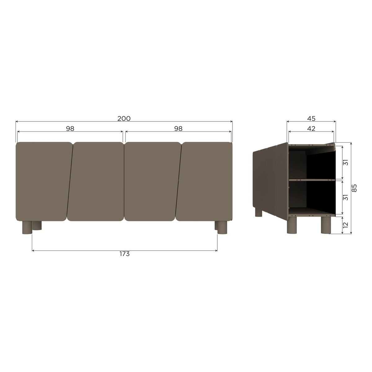 | Abmessungen BxTxH: | 200x45x85 cm |