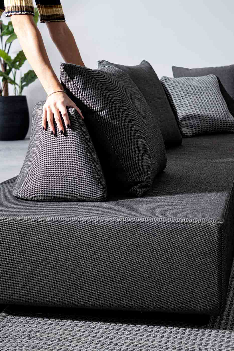 Das moderne Outdoor Sofa Piper ist trotz seiner schlichten Optik ein absoluter Hingucker in deinem Garten. Die mondförmigen Rückenlehnen sind beliebig platzierbar, verrutschen aber aufgrund des Materials nicht. Der Bezug besteht aus Olefin, einer synthetischen Faser aus Polypropylen. Die Polsterung wird aus PU-Schaum gefertigt. Das Sofa ist wasserabweisend und UV-beständig
