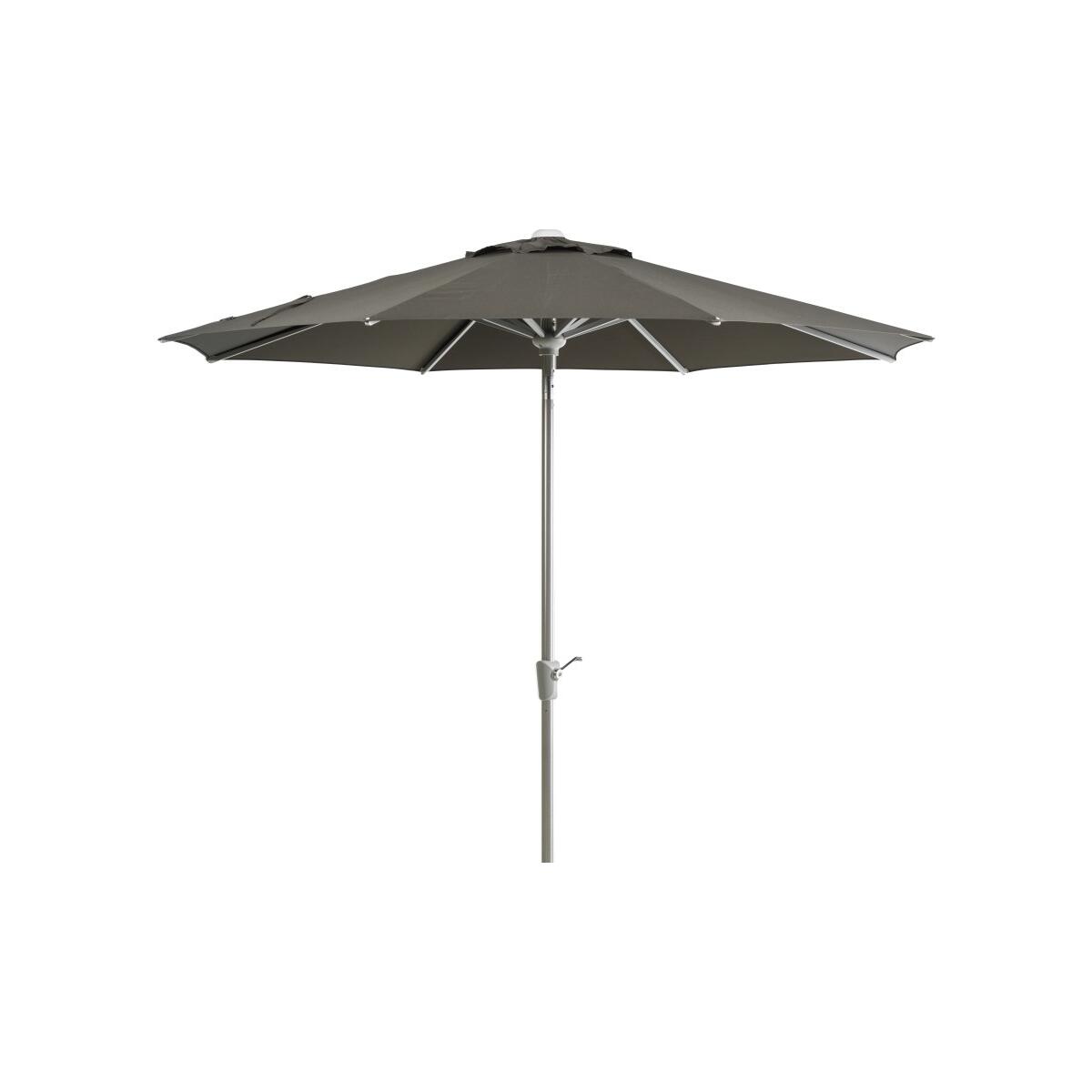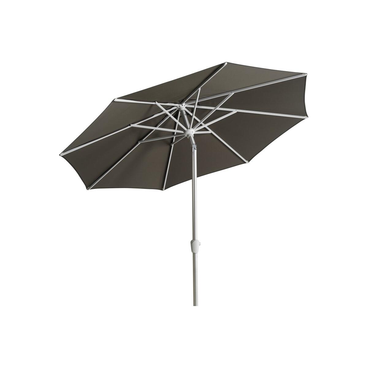 Mit diesem runden Schirm bringst Du stilvolle Eleganz in Deinen Außenbereich. Der dunkle Schirmstoff in Charcoal Black schafft eine beruhigende Atmosphäre und fügt sich harmonisch in verschiedene Umgebungen ein. Die dezente Silberoptik des Gestells unterstreicht das zeitgemäße Design und lädt dazu ein, Deine Terrasse oder den Balkon als persönlichen Rückzugsort zu gestalten. Dank der bequemen Neigefunktion wählst Du im Handumdrehen die perfekte Position für entspannte Stunden im Wechselspiel von Sonne und Schatten.