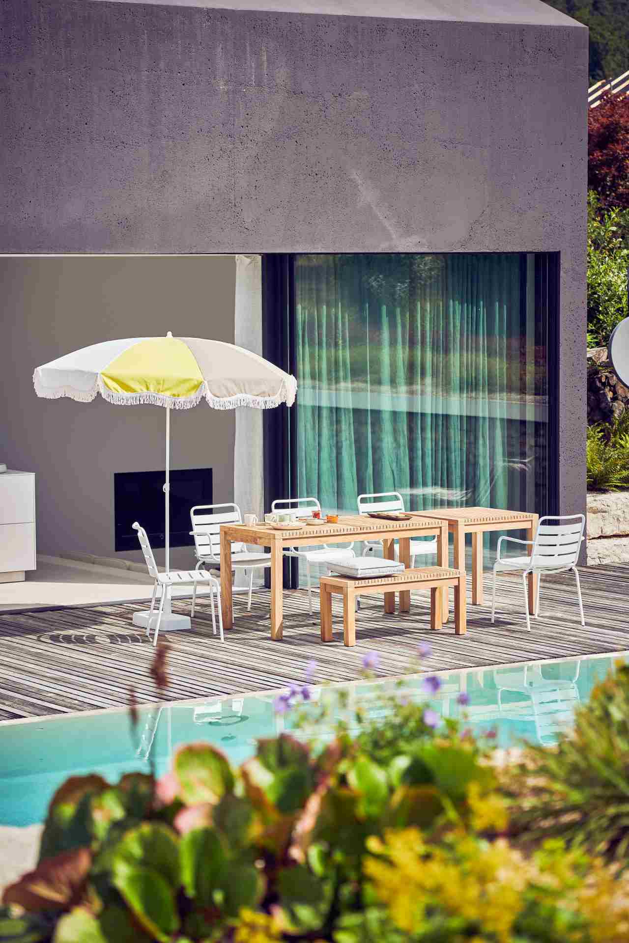 | Materialeigenschaft: | Möbel aus Aluminium zeichnen sich durch Materialeigenschaften wie geringes Gewicht, absolute Wetterfestigkeit und lange Lebensdauer aus und eignen sich daher besonders für den Garten- und Freizeitbereich. |