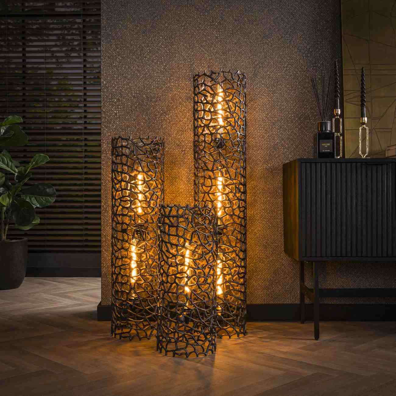 Besonderheiten: | Zylinderförmiger Schirm in offener Aststruktur-Optik |