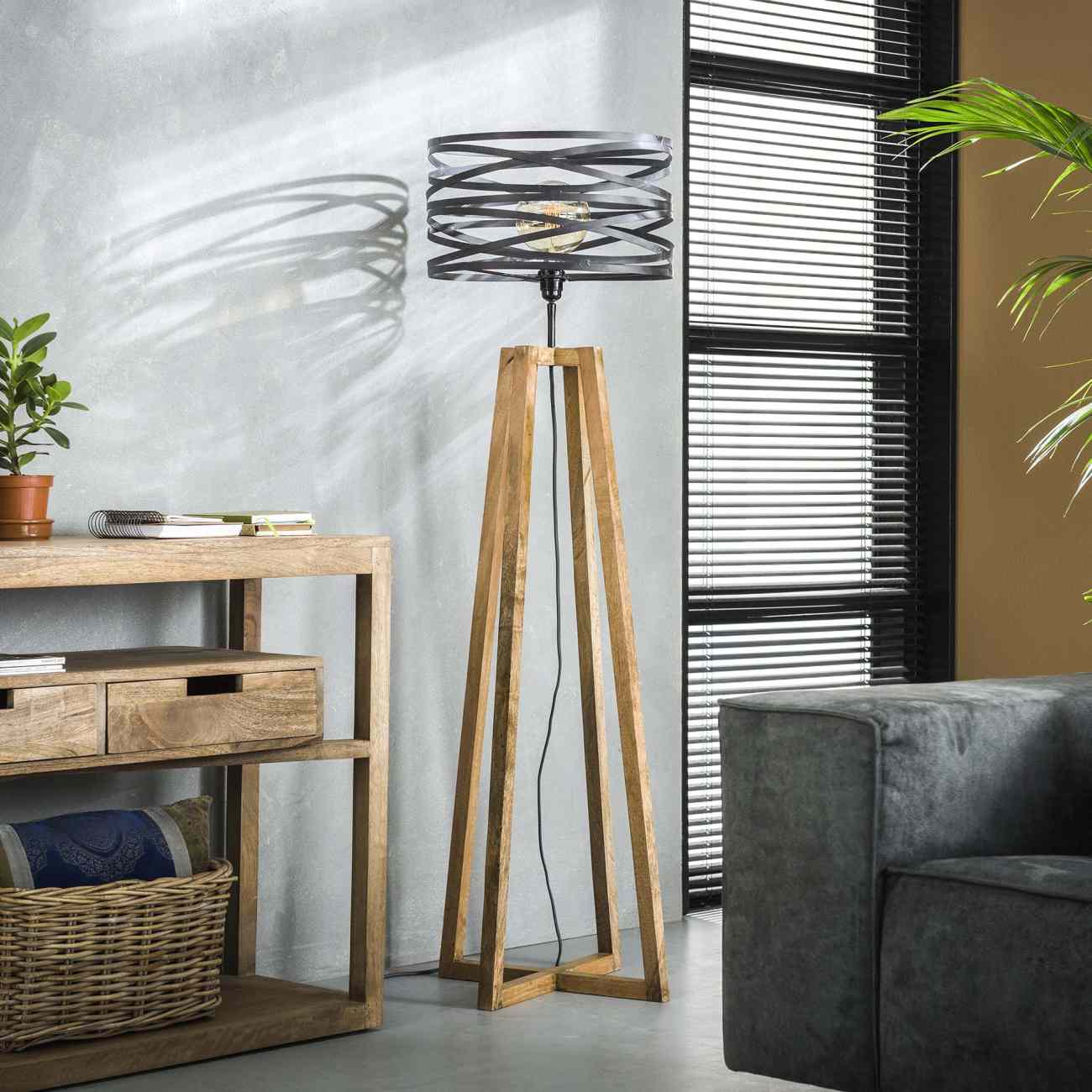 Produktinformationen "Stehleuchte Tillansay - Holz Natur, Metall in Schiefergrau, inkl. LED"