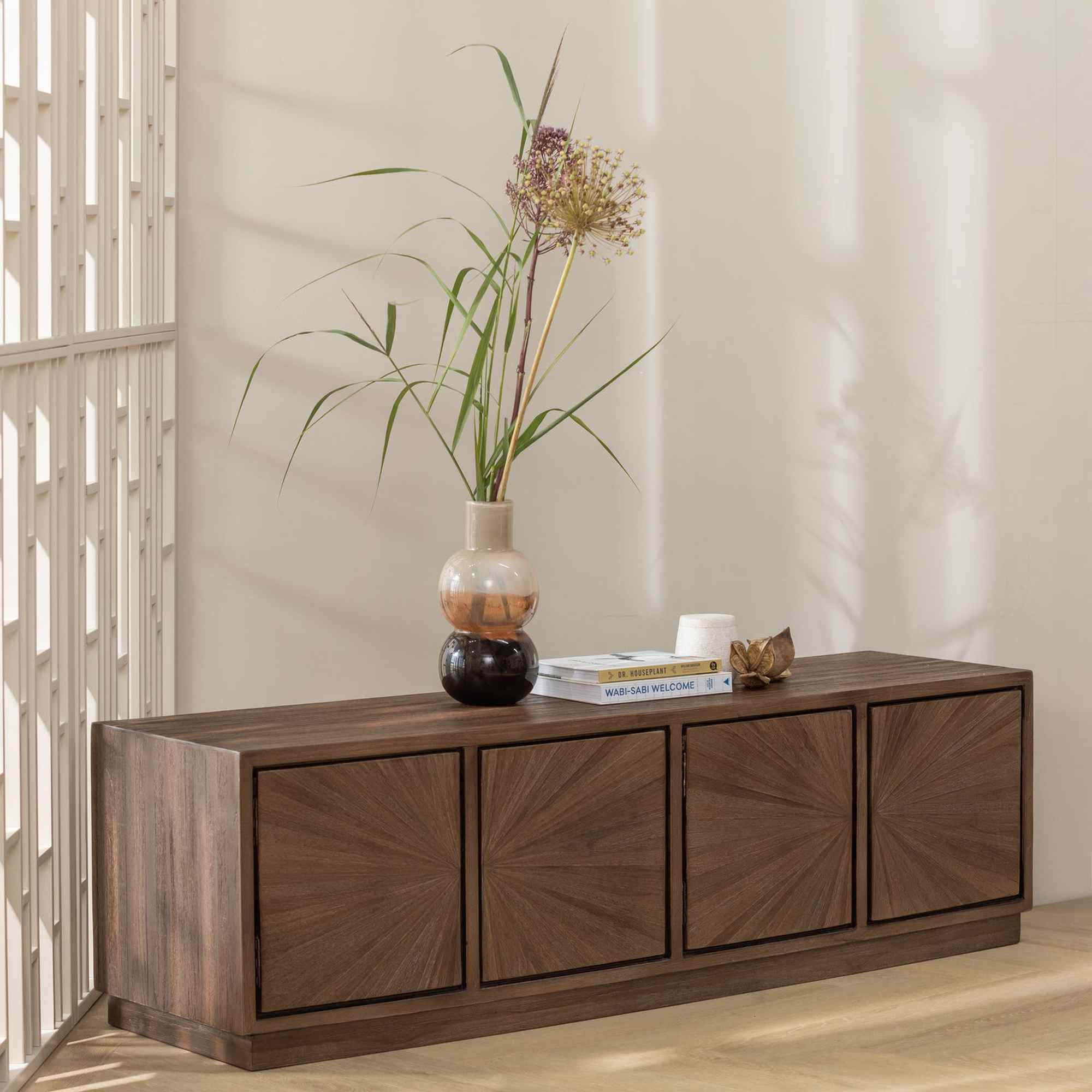Produktinformationen "Sun TV-Board - recyceltem Teakholz - 150 cm breit, luxuriöses mit raffinierten Türdetails, Braun"