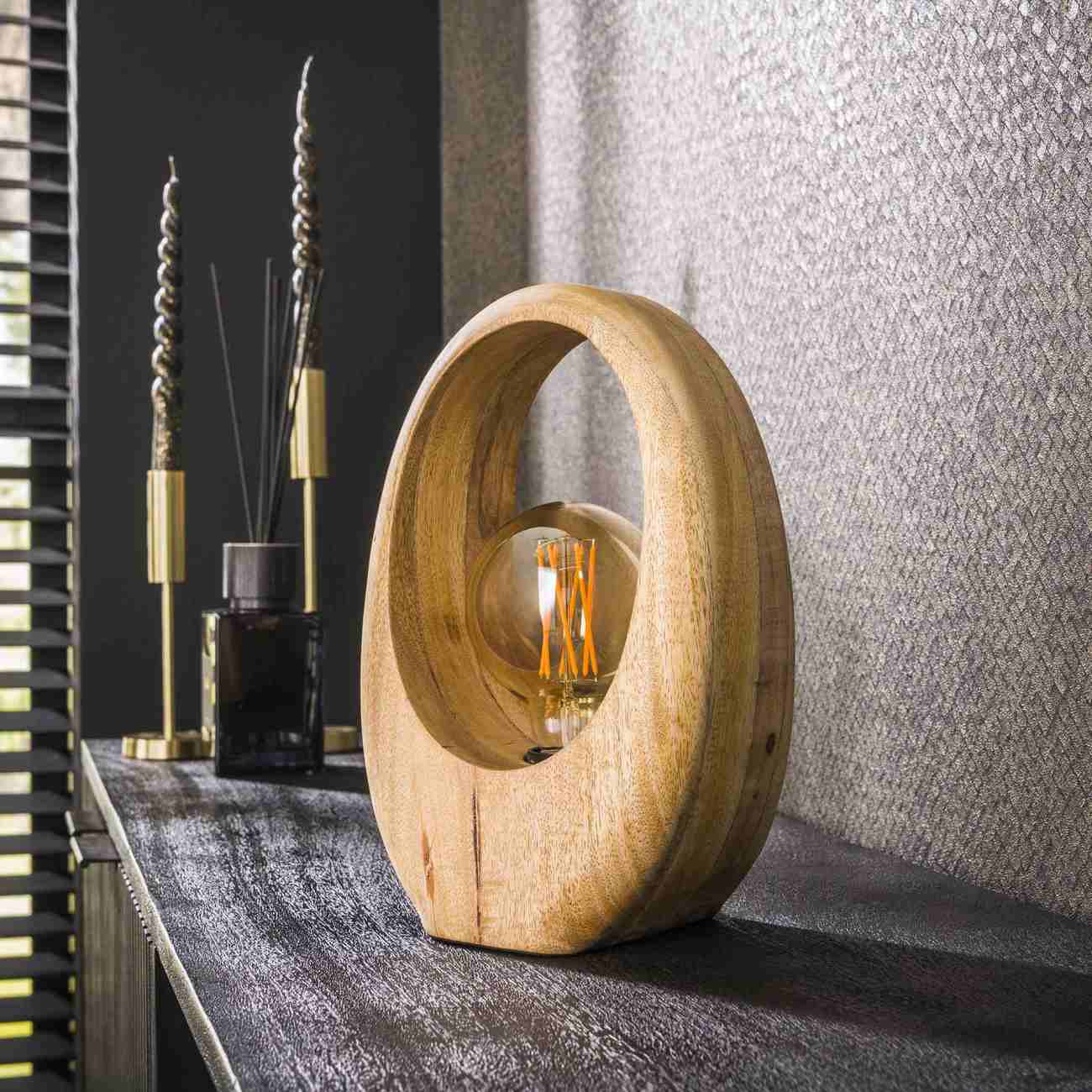 Produktinformationen "Tischleuchte Arolvora - Mangoholz Natur, Bogendesign, inkl. LED, S"
