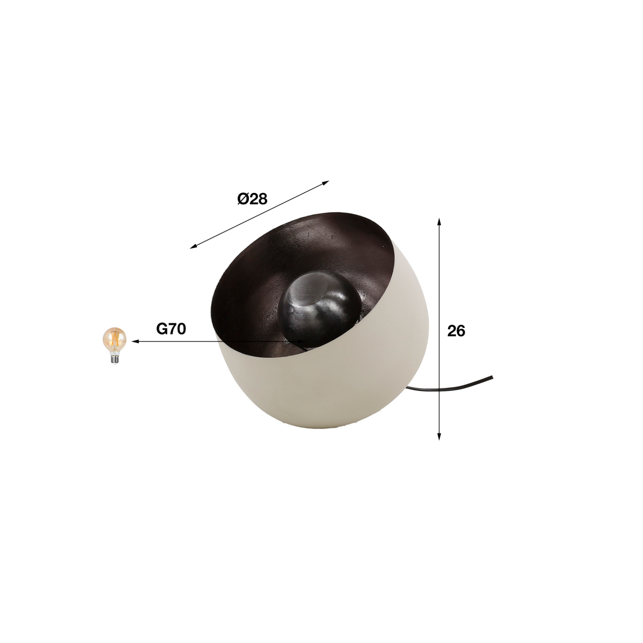 Lieferumfang: | 1 Tischlampe, Bedienungsanleitung, 1 LED-Leuchtmittel Globus G70 Ø 7 cm |
