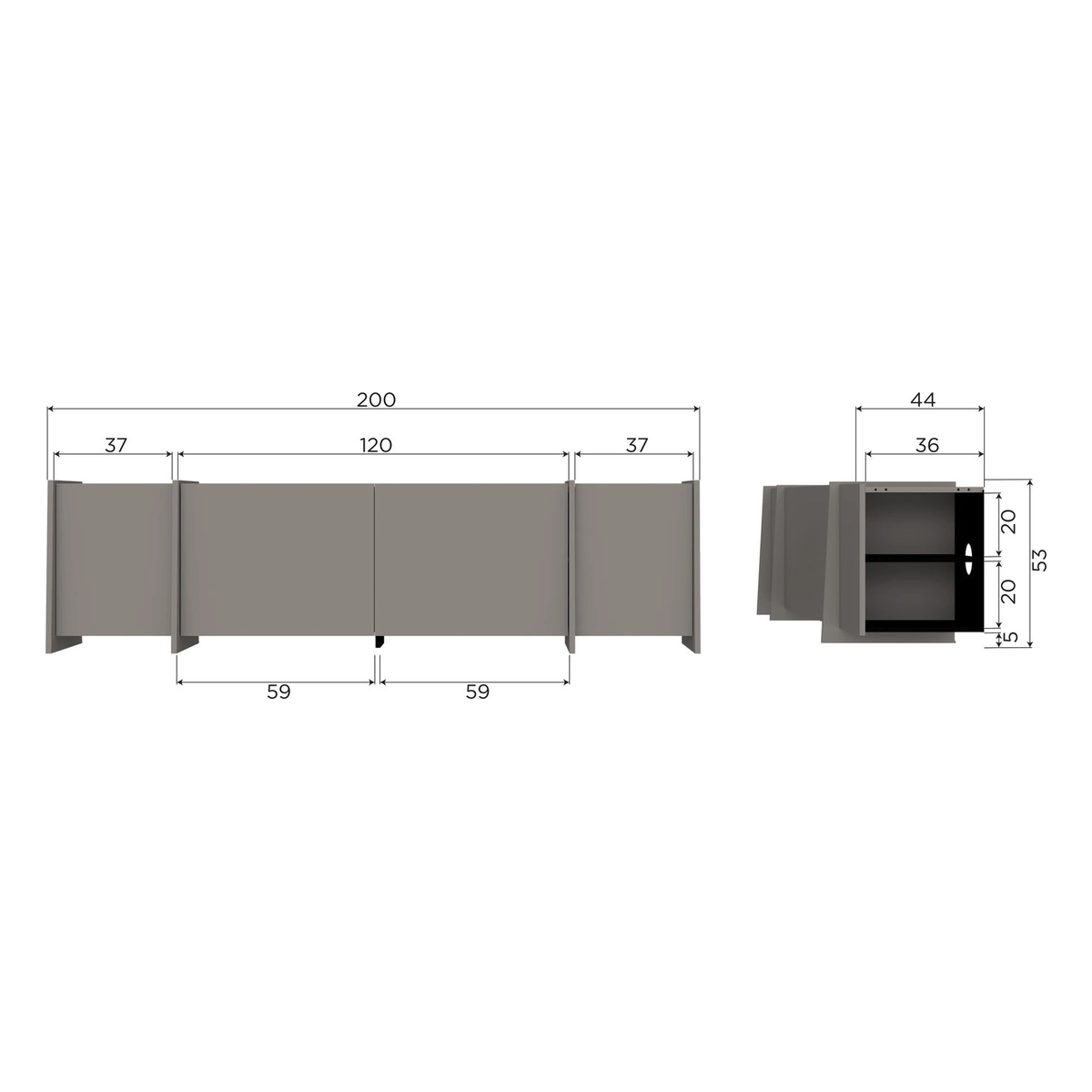 TV-Board Brock - Aschenfurnier warmes Grau, 200 cm