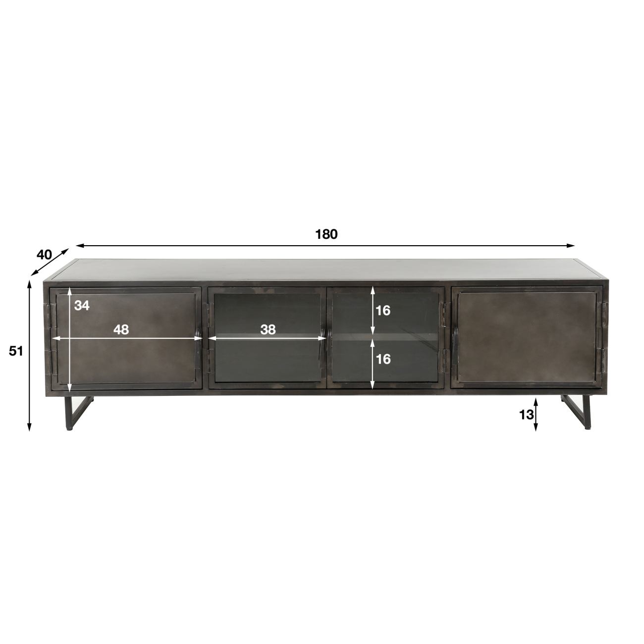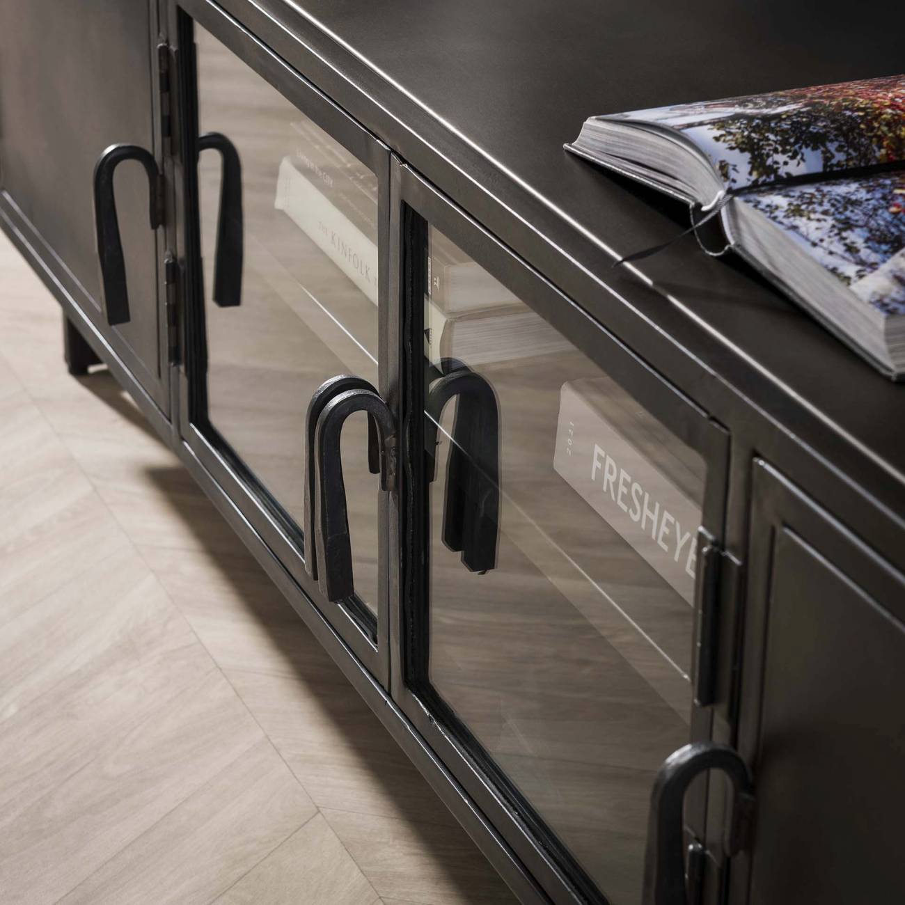 Produktinformationen "TV-Board Cheol - dunkelgraues Metall & Glas, mit 4 Türen, 180 cm"