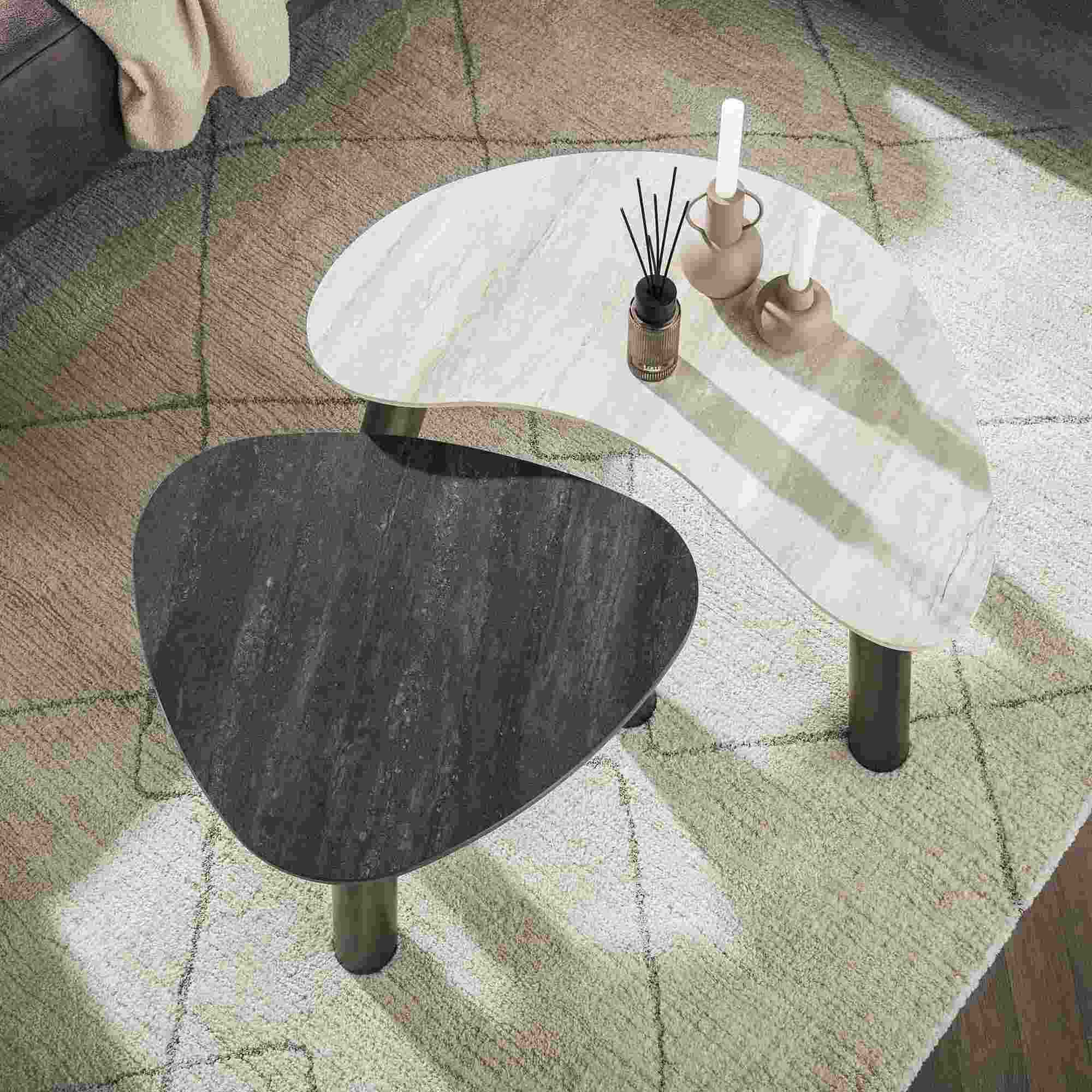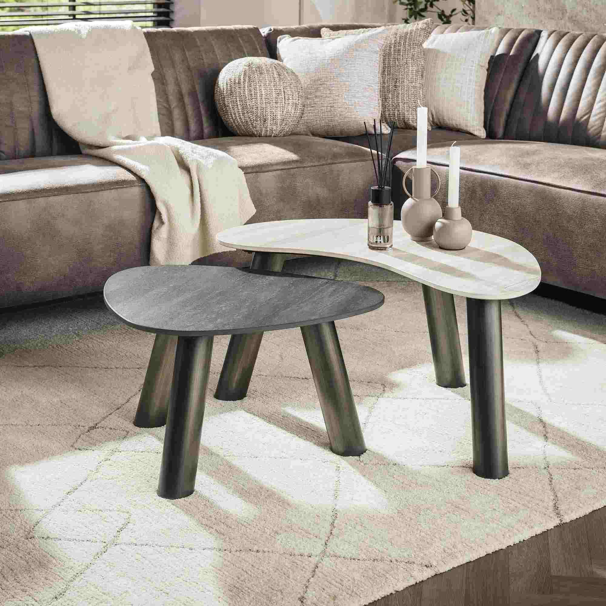 Wint Couchtisch-Set – Keramik, Edelstahl – Hellgrau & Dunkelgrau, Organisch